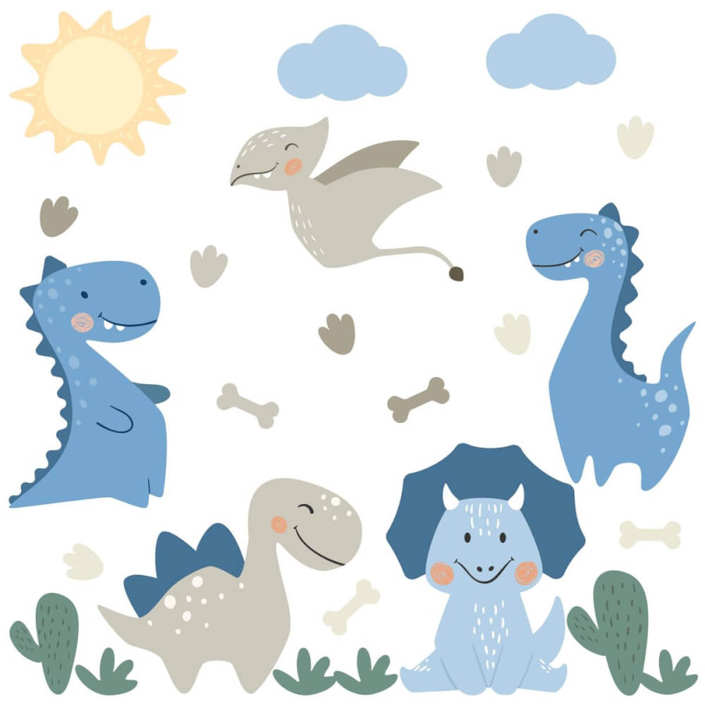 Adesivo de Parede Infantil Dinossauros Jurassic Baby AzulAdesivo de Parede Infantil Dinossauros Jurassic Baby Azul