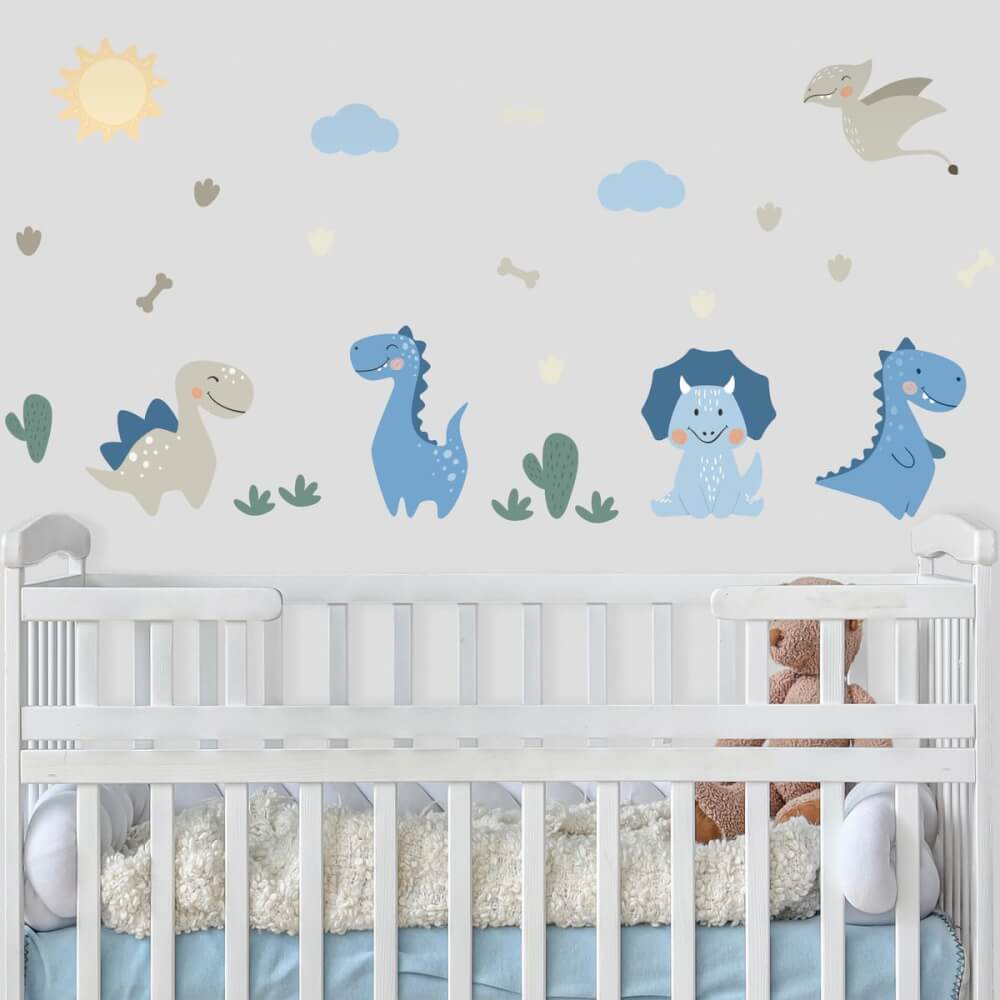 Adesivo de Parede Infantil Dinossauros Jurassic Baby Azul