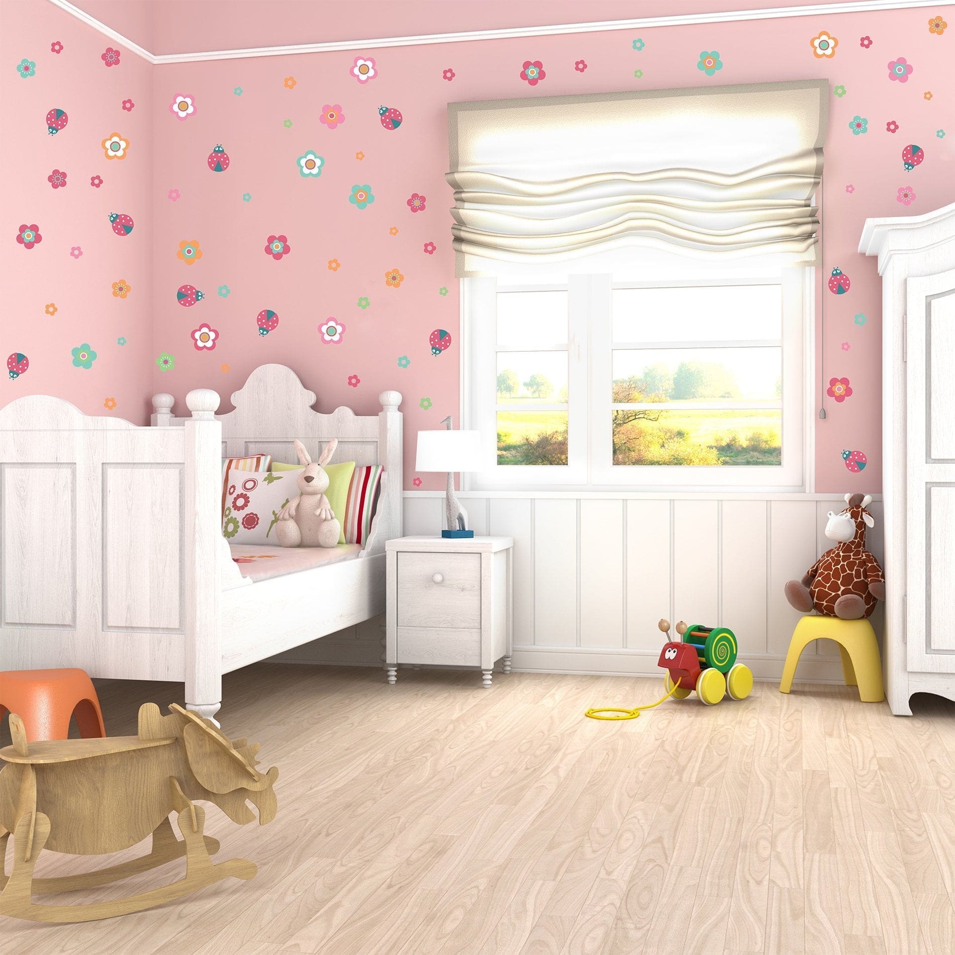O Adesivo de Parede Infantil Joaninhas e Flores é ideal para deixar o quarto das meninas mais feminino e charmoso. Adquira agora!