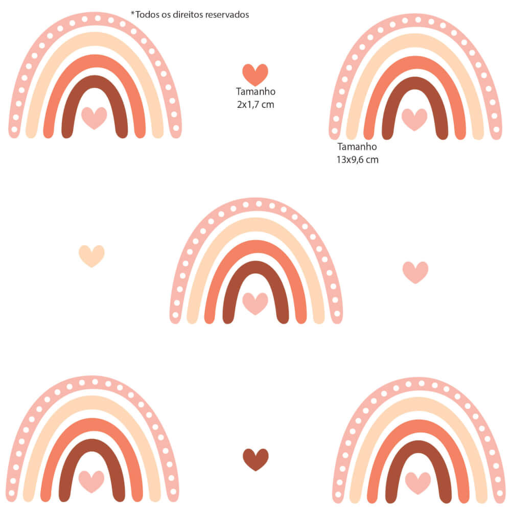 Características e dimensões do Adesivo de Parede Infantil Arco-Íris Tons Terrosos