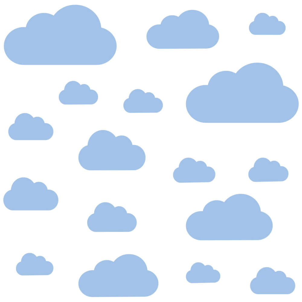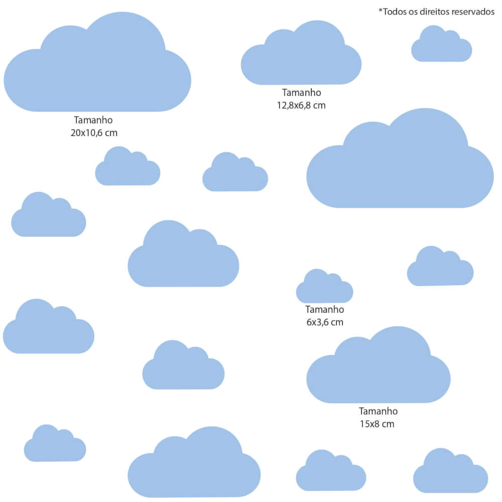 – Adesivos de nuvens que variam de 20×10,6 cm a 6×3,6.