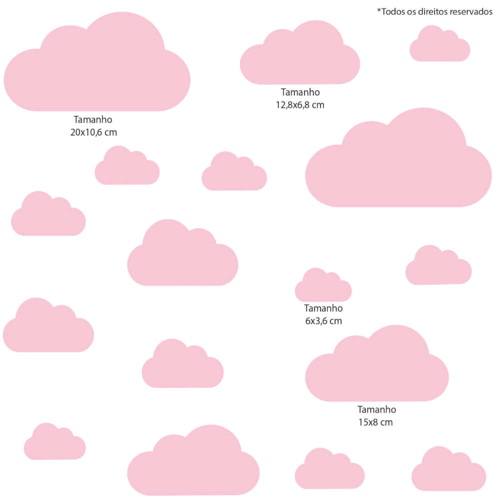 – Adesivos de nuvens que variam de 20×10,6 cm a 6×3,6.
