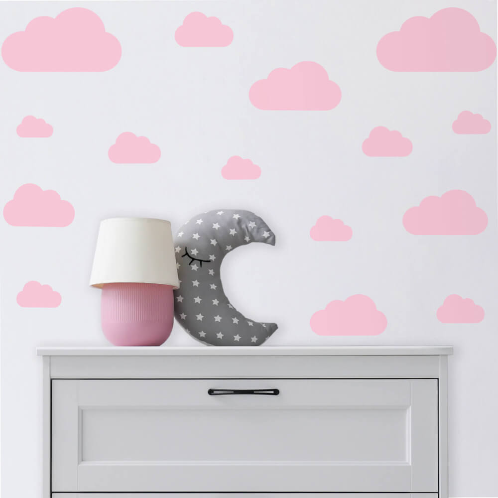Características e dimensões do Adesivo de Parede Infantil Nuvens Rosa Menina