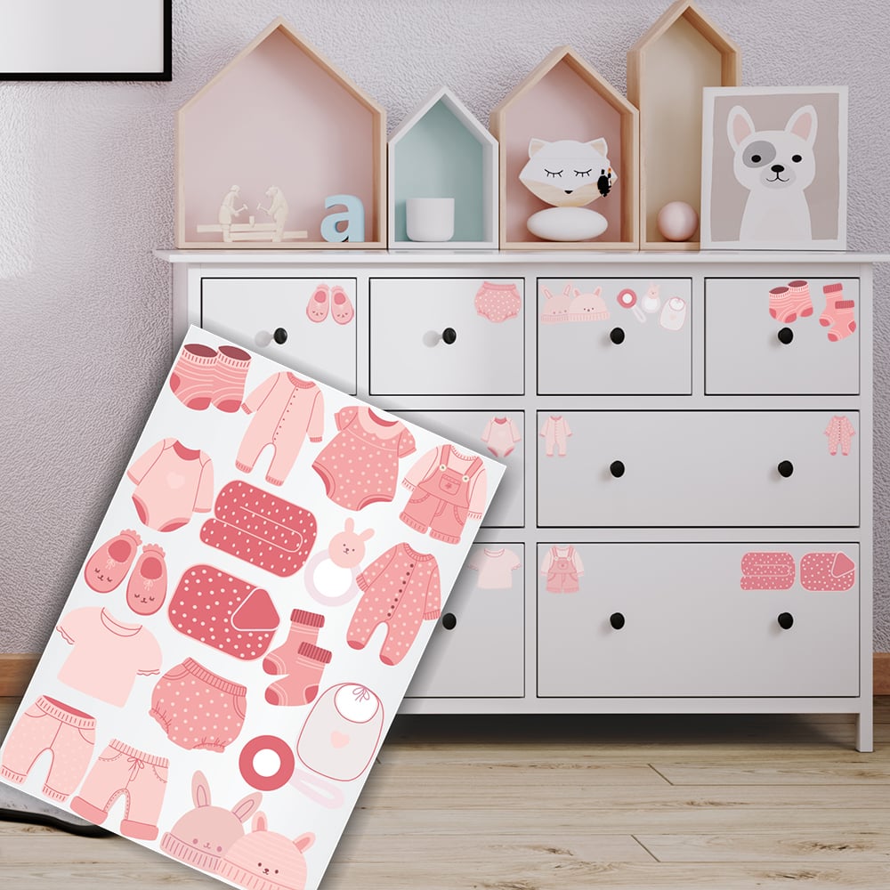 Adesivo Organizador Infantil Rosa Para Roupa de Menina 18un
