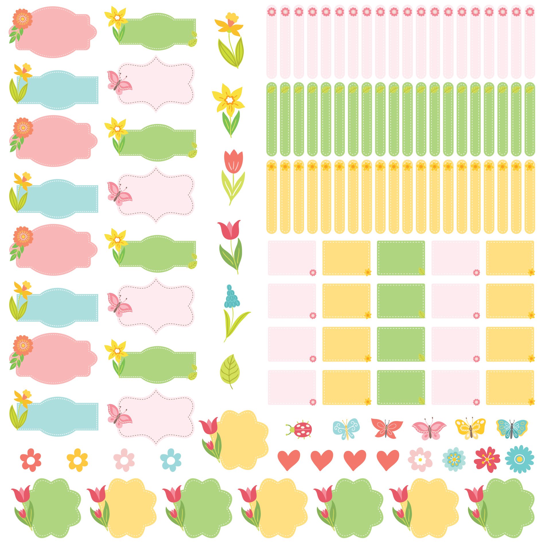 O kit de etiquetas escolares vem com 128 adesivos escolares distribuídos em: