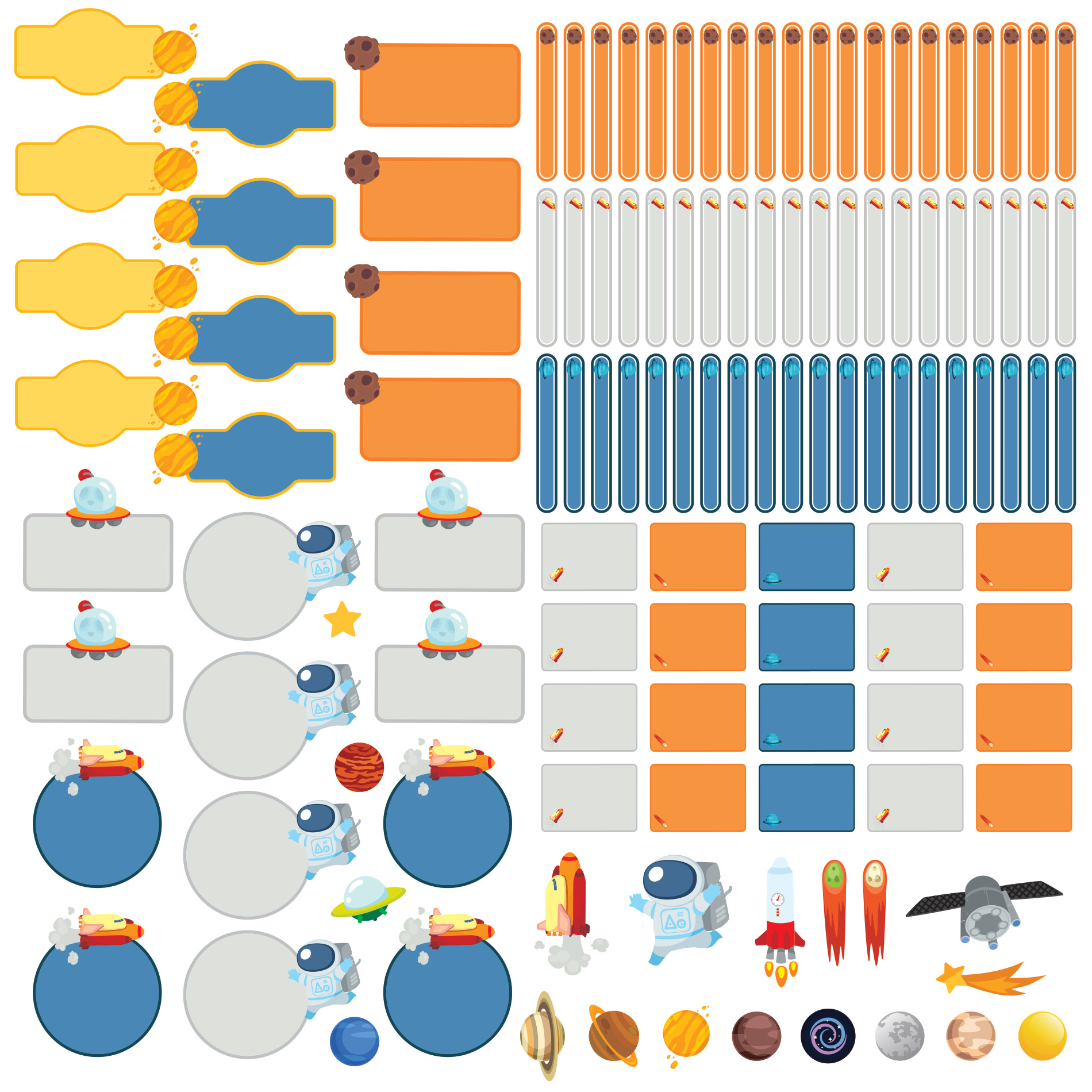 O kit de etiquetas escolares vem com 123 adesivos escolares distribuídos em: