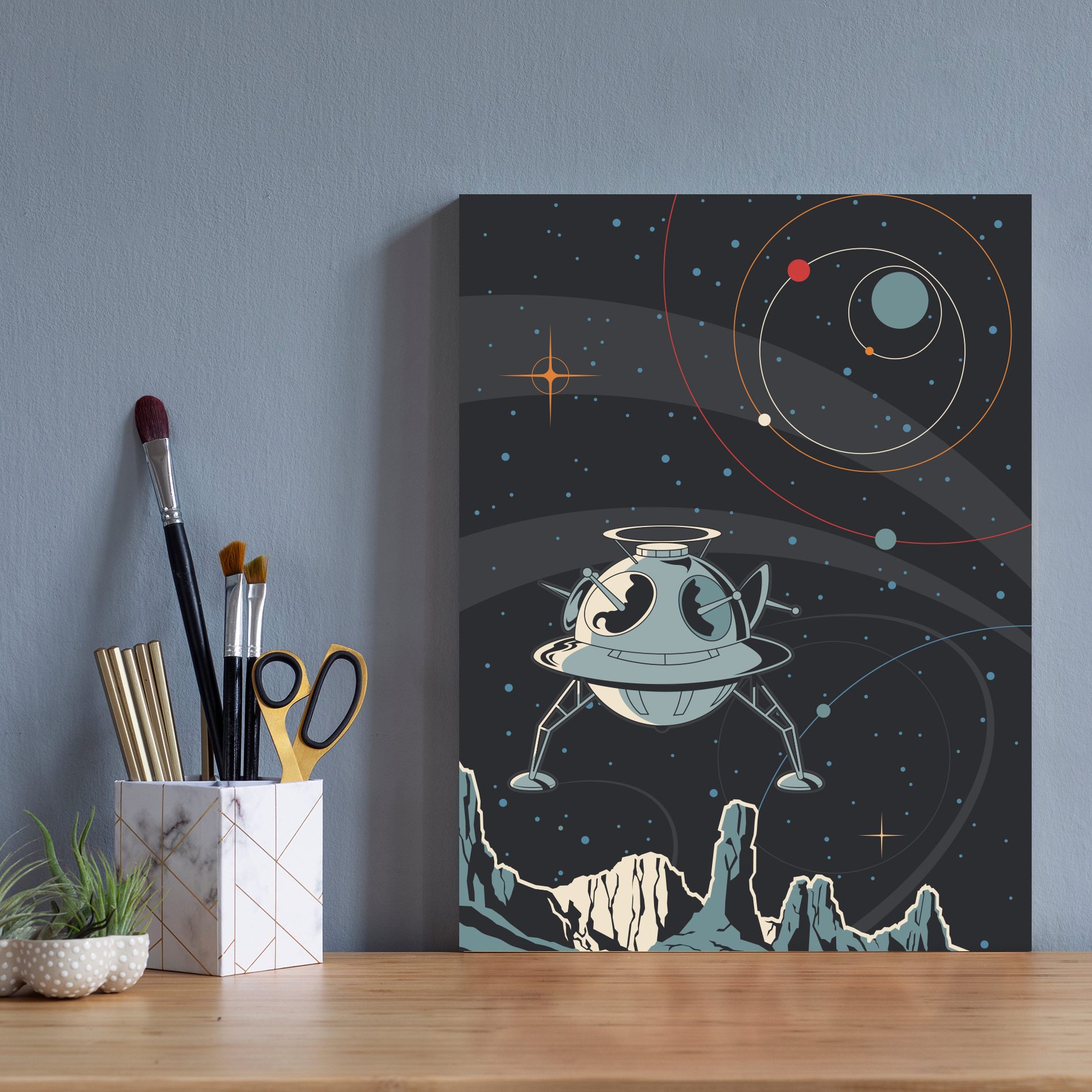 Placa Decorativa Espaço Retrô Foguete Esférico 20×30 cm