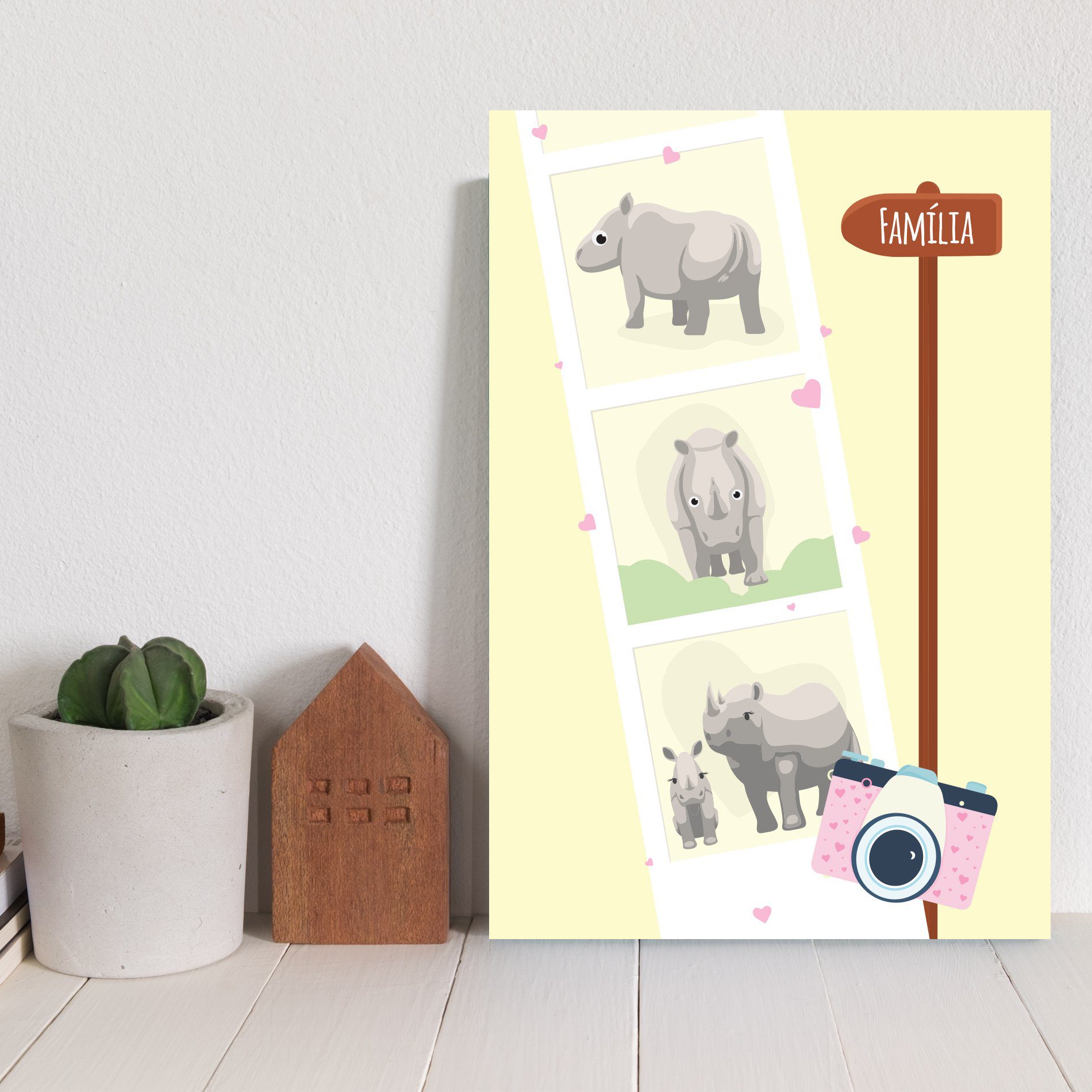 Para a chegada do bebê decore com placa decorativa Rinoceronte Fotografia e se apaixone.