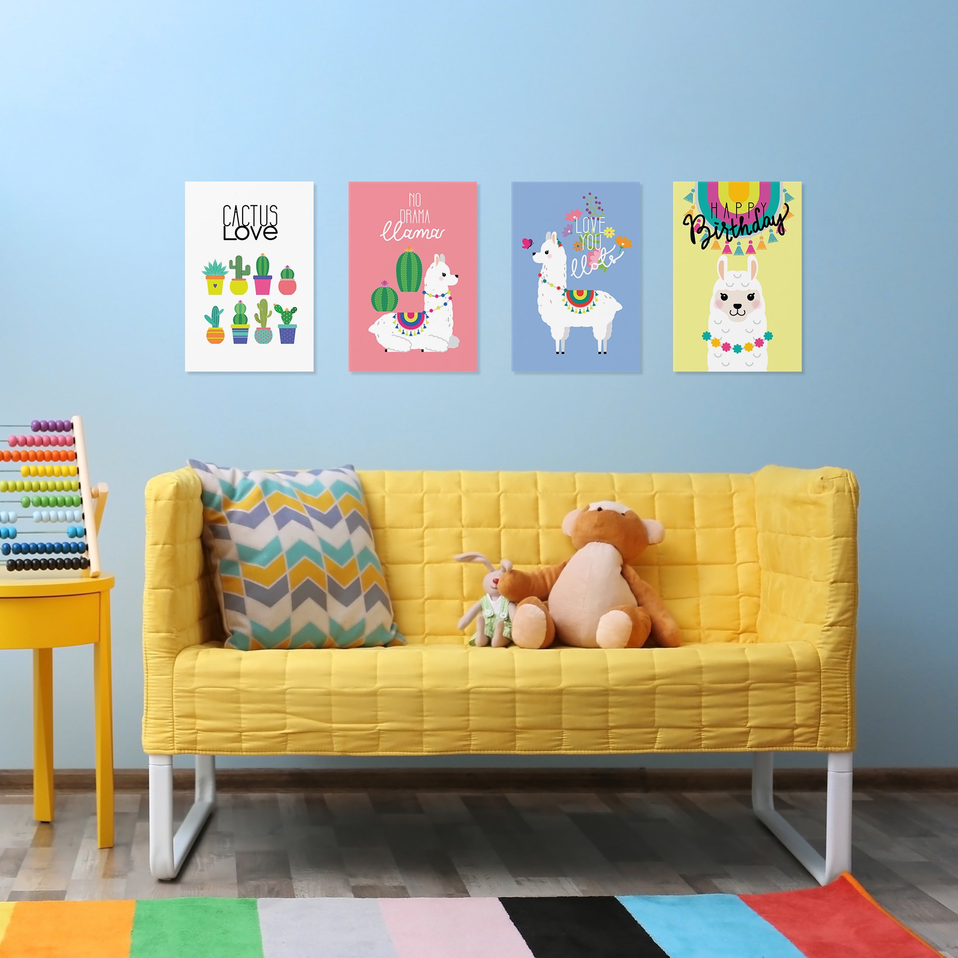 Yellow,Sofa,With,Toys,In,Children,RoomPlacas Decorativas Lhama 2 MDF 20x30cm Kit 4un