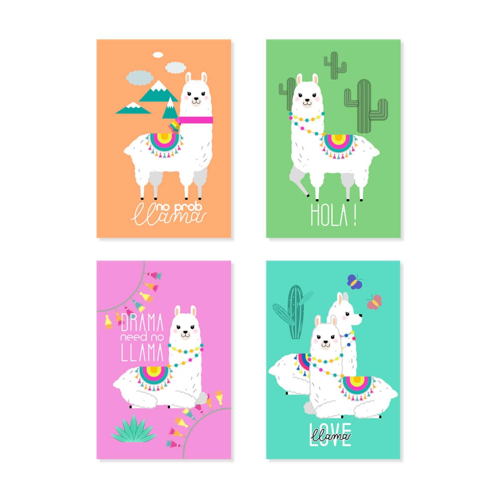 Placas Decorativas Lhama MDF 20x30cm Kit 4un