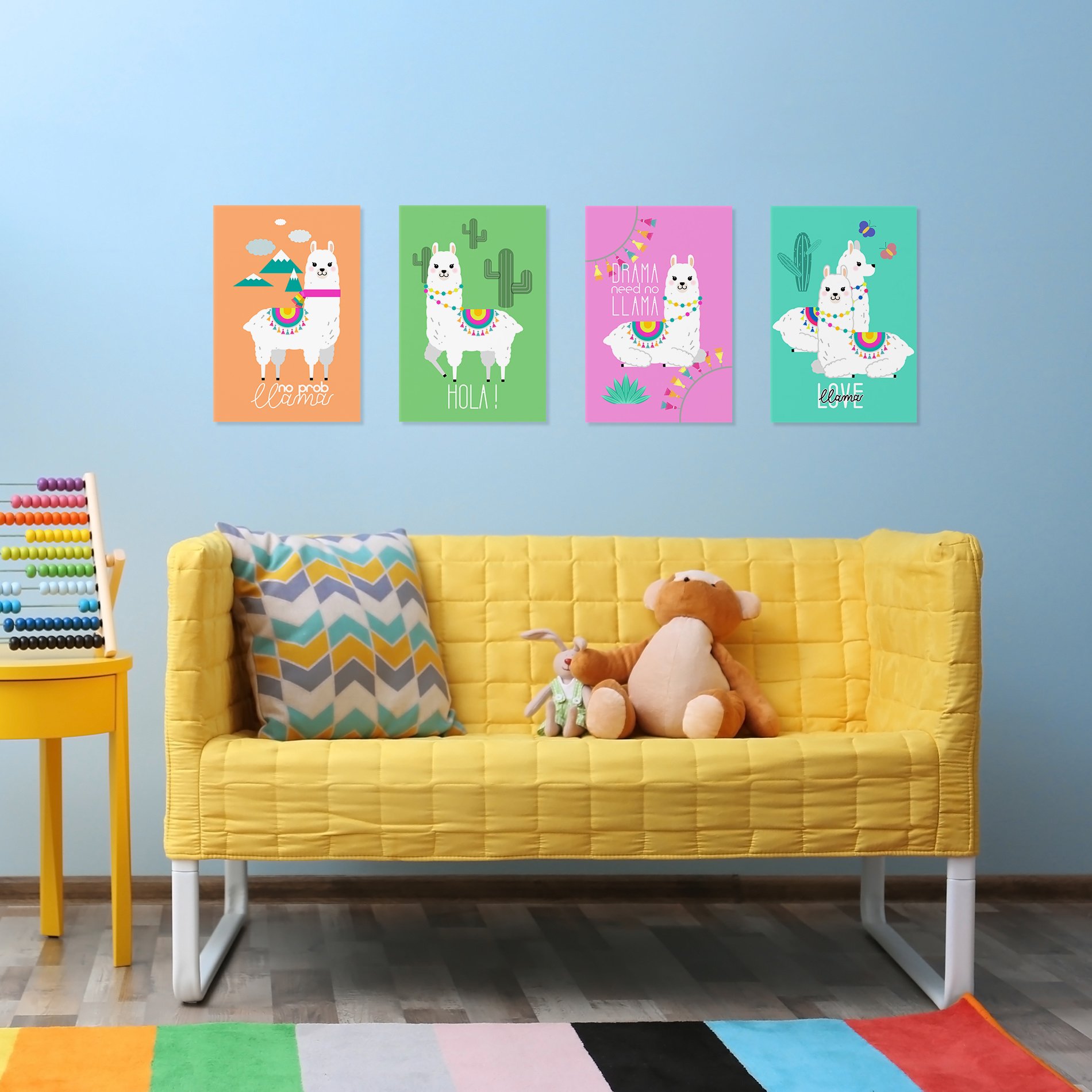 Yellow,Sofa,With,Toys,In,Children,RoomPlacas Decorativas Lhama MDF 20x30cm Kit 4un