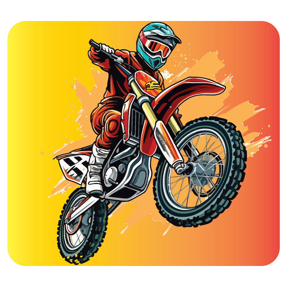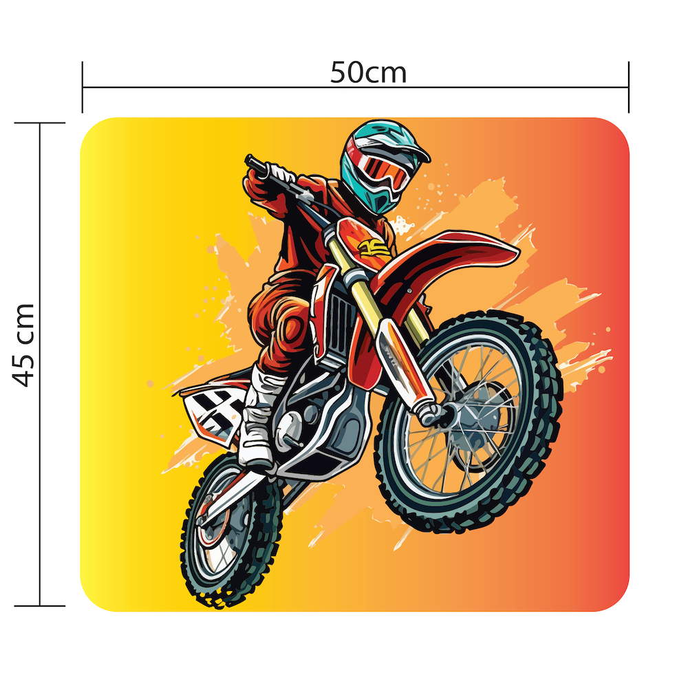 Adesivo antiderrapante para banheiro com ilustração de moto de trilha vermelha, dimensões 50x45 cm, aplicação em piso infantil