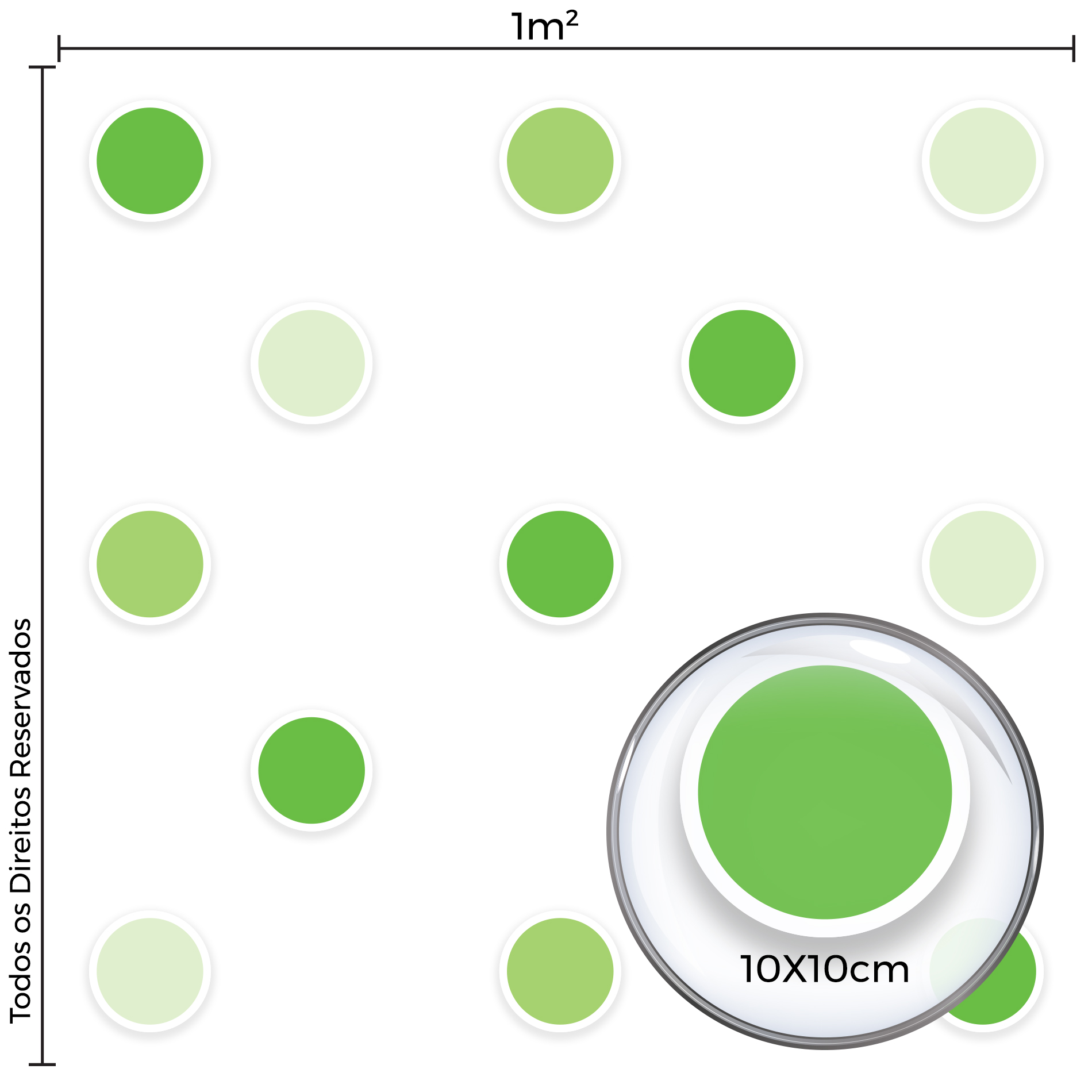 14 Bolinhas Tons Verde: 10cm x 10cm