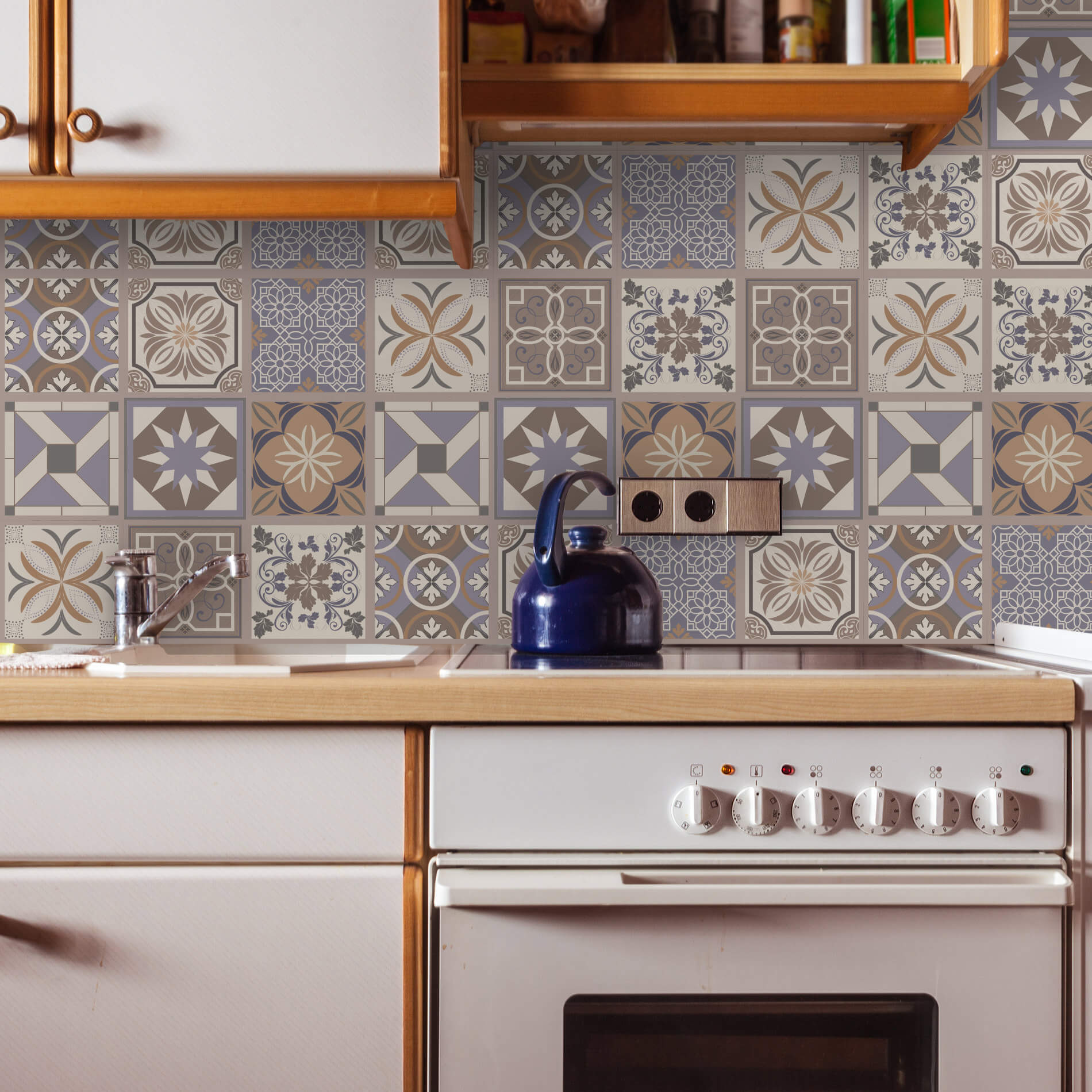 O Adesivo de Azulejo Cozinha Lavanda tem uma combinação delicada de cores e traços suaves, perfeito para quem procurar decorar a cozinha com tons suaves e sóbrios. Os Adesivos Decorativos possuem estampas representando Ladrilho Hidráulico como os azulejos portugueses clássicos. Esse estilo de azulejo hidráulico europeu, dentro da decoração com adesivos, traz elegância e sofisticação para o ambiente.
