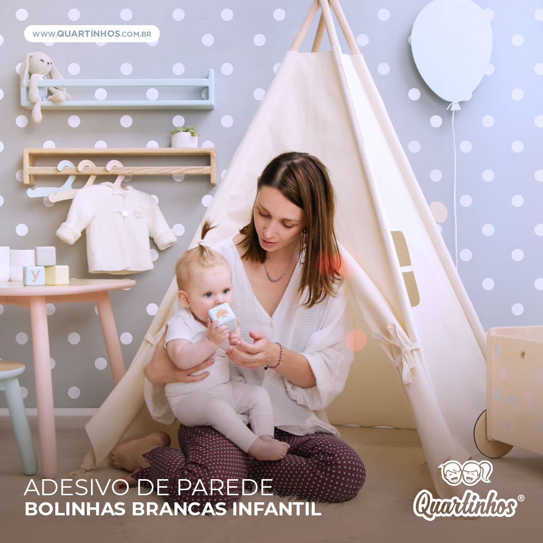 Adesivo de Bolinhas Brancas Quarto Infantil 144un Cobre 3m²