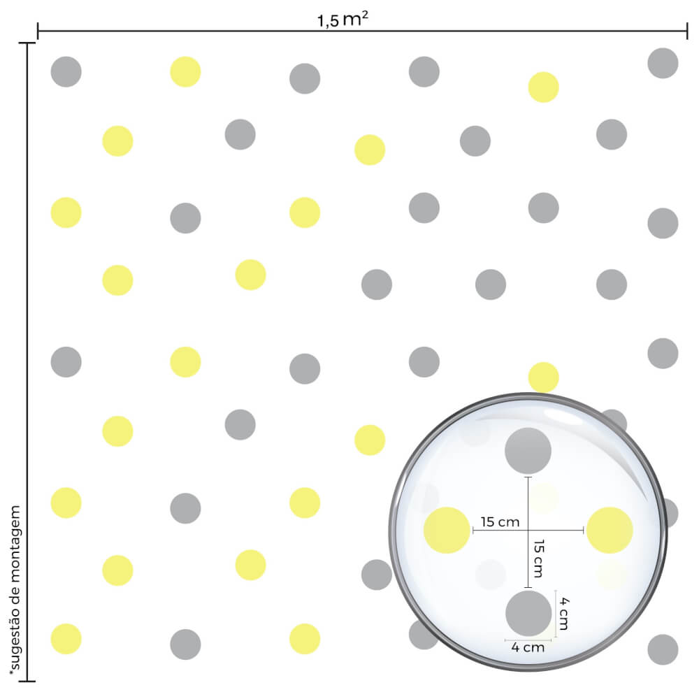 Adesivo de Bolinhas Amarelo e Cinza 80 un Cobre 1,5m²
