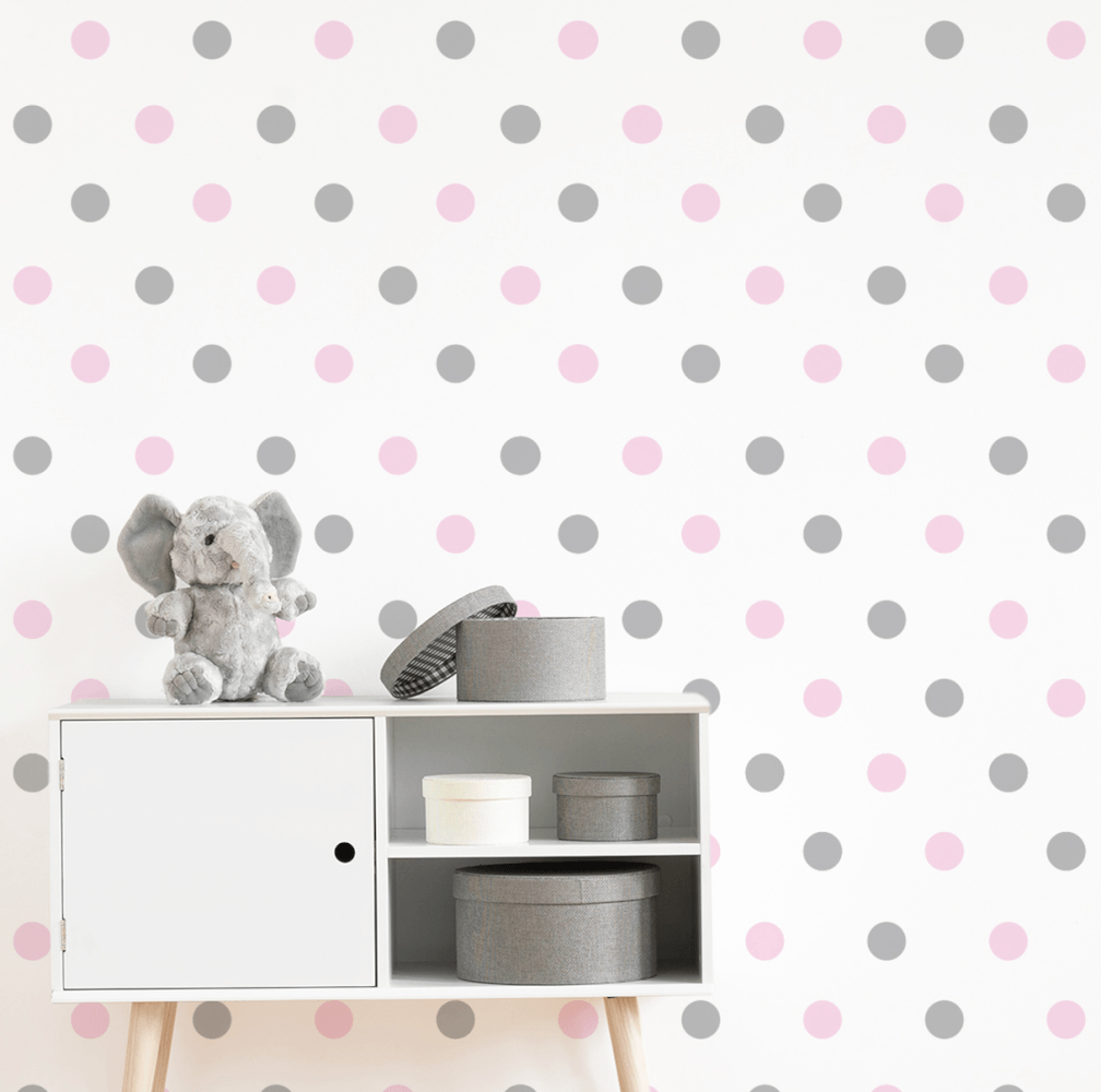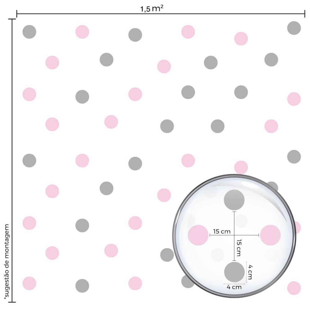 Adesivo de Bolinhas Rosa e Cinza 80un Cobre 1,5 m²