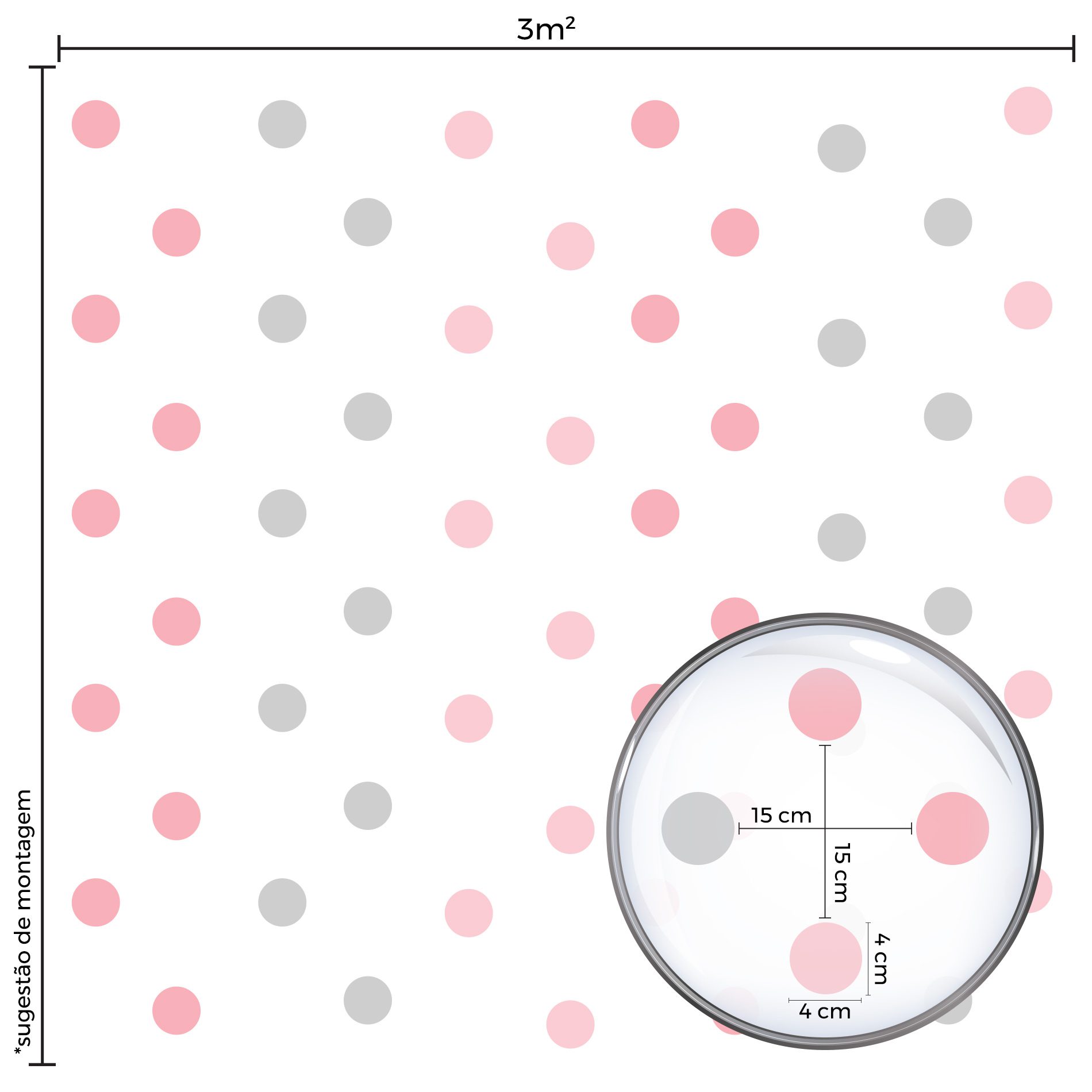 Adesivo de Bolinhas tons de Rosa e Cinza 4cm 144 un Cobre 3m²