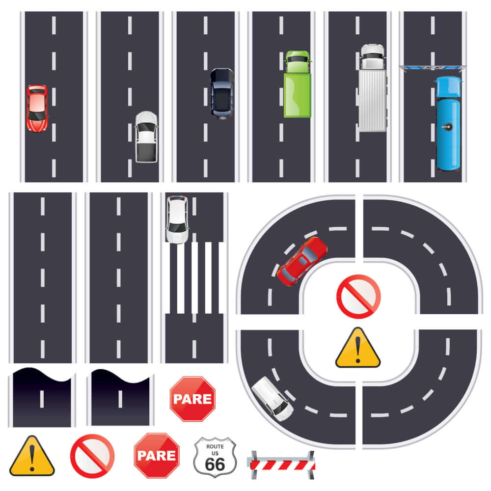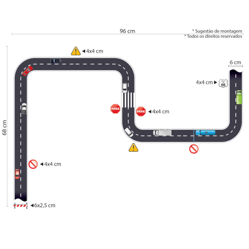 Características e dimensões do Adesivo de Chão Infantil Ruas e Carros
