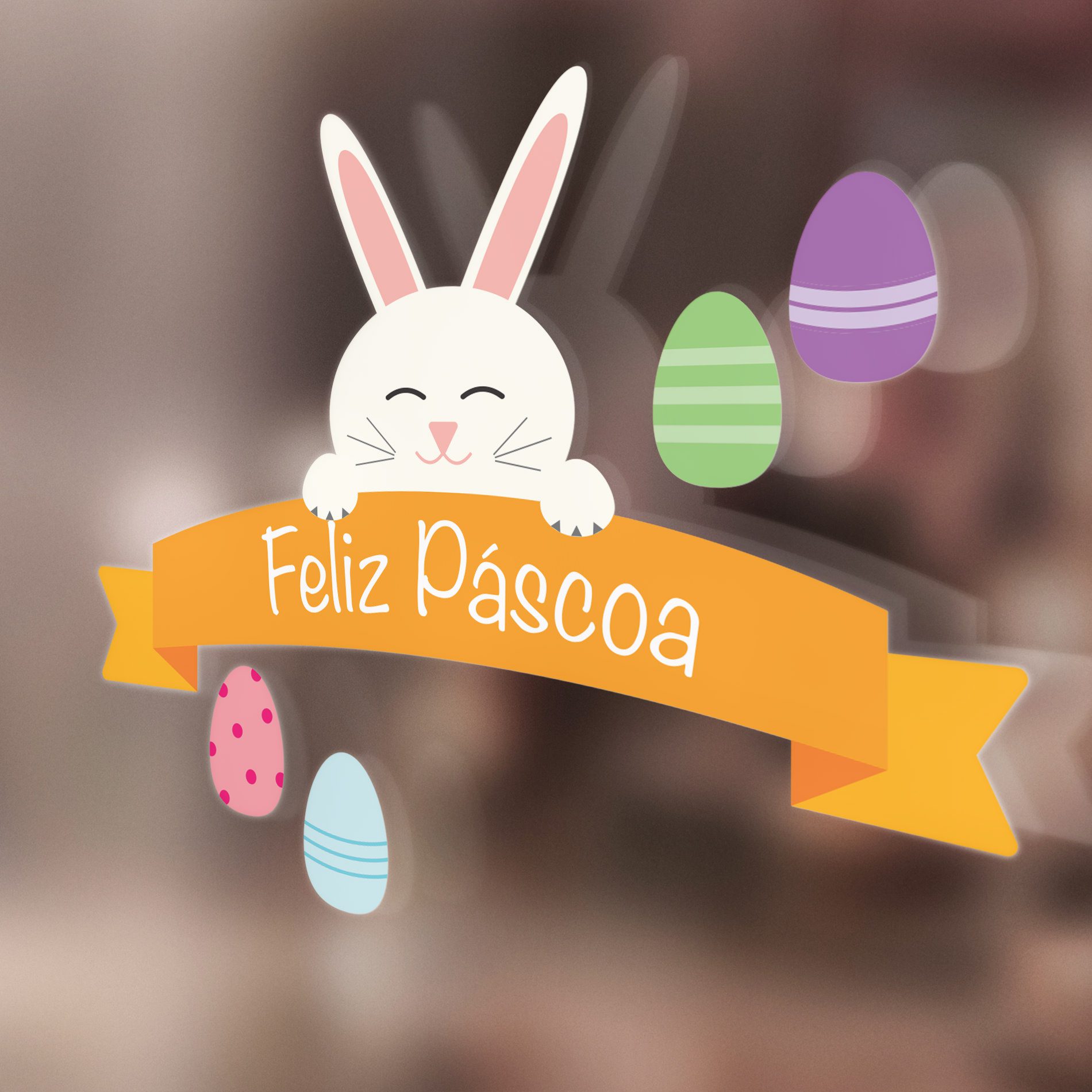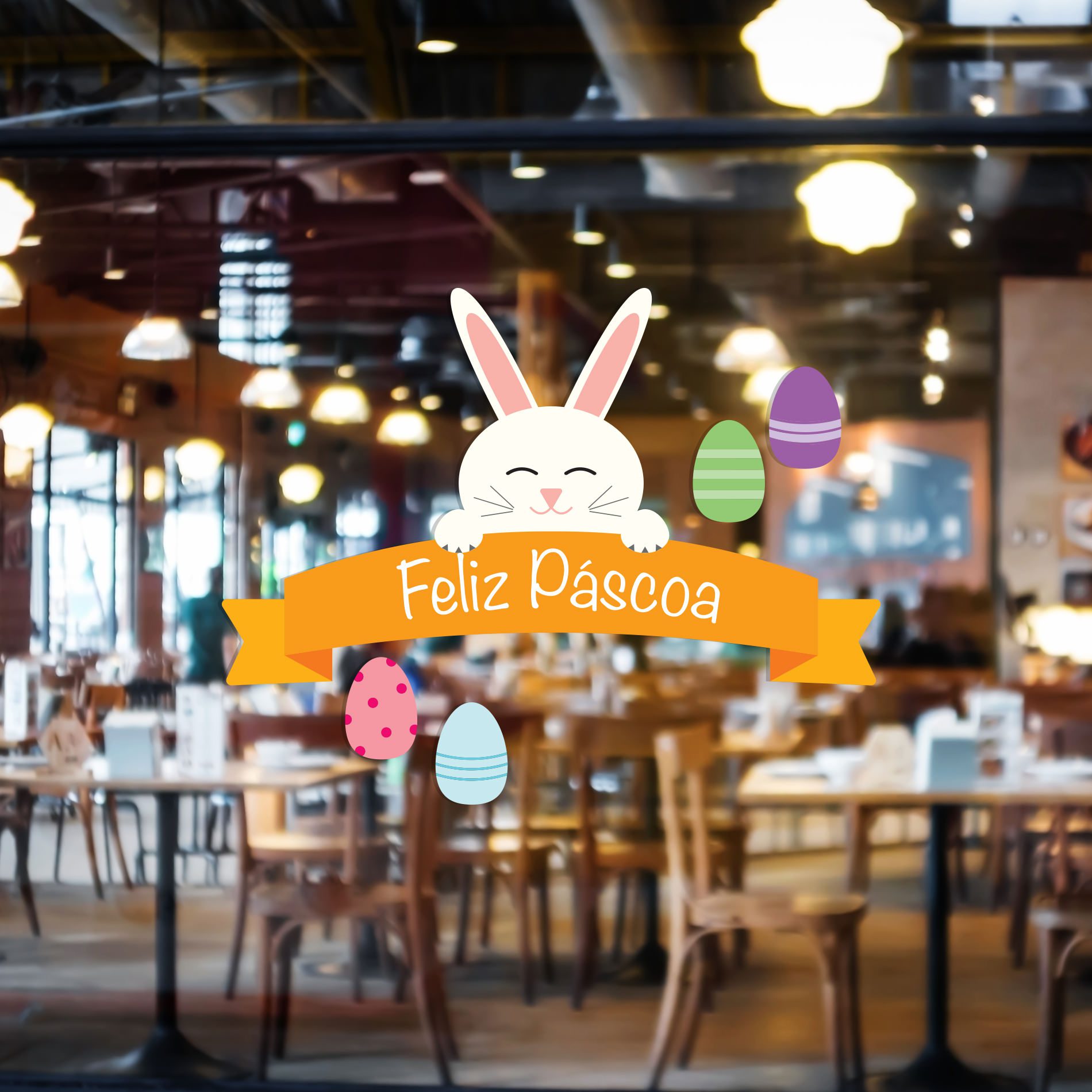 Adesivo de Coelho para Decoração de Páscoa para Portas e Vitrines