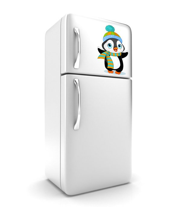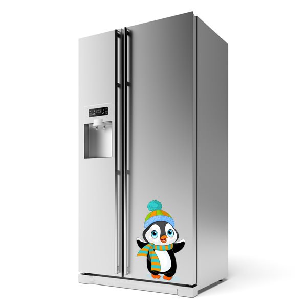 Nosso pinguim adesivo de geladeira em uma versão de inverno! Para variar e para deixar a sua geladeira com um ar mais descontraído.