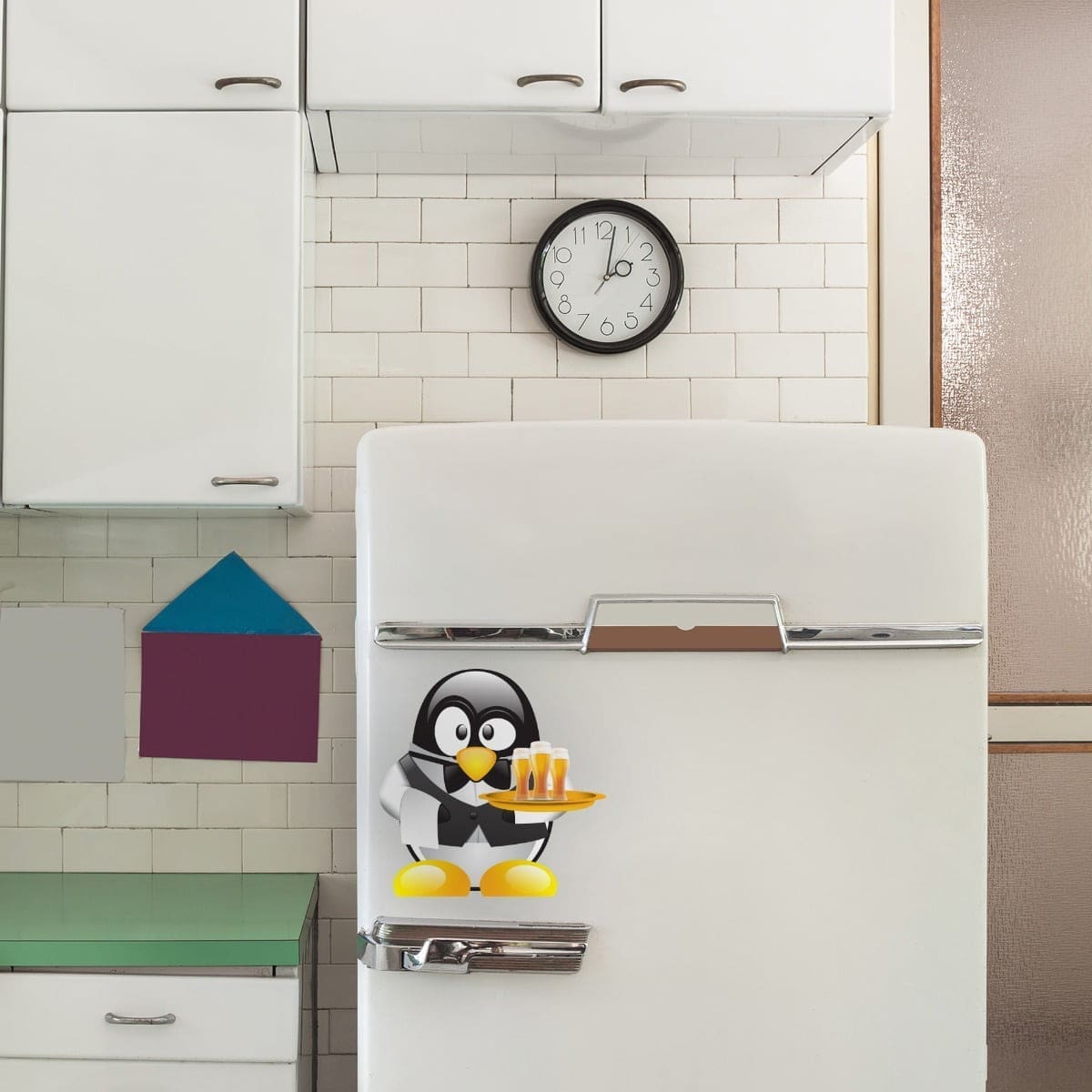 Um simpático pinguim de geladeira servindo cervejas pode ser uma ótima opção para dar um toque irreverente a sua cozinha ou área de churrasco. É muito fácil e rápido de aplicar, rapidinho sua geladeira ganha uma cara nova!