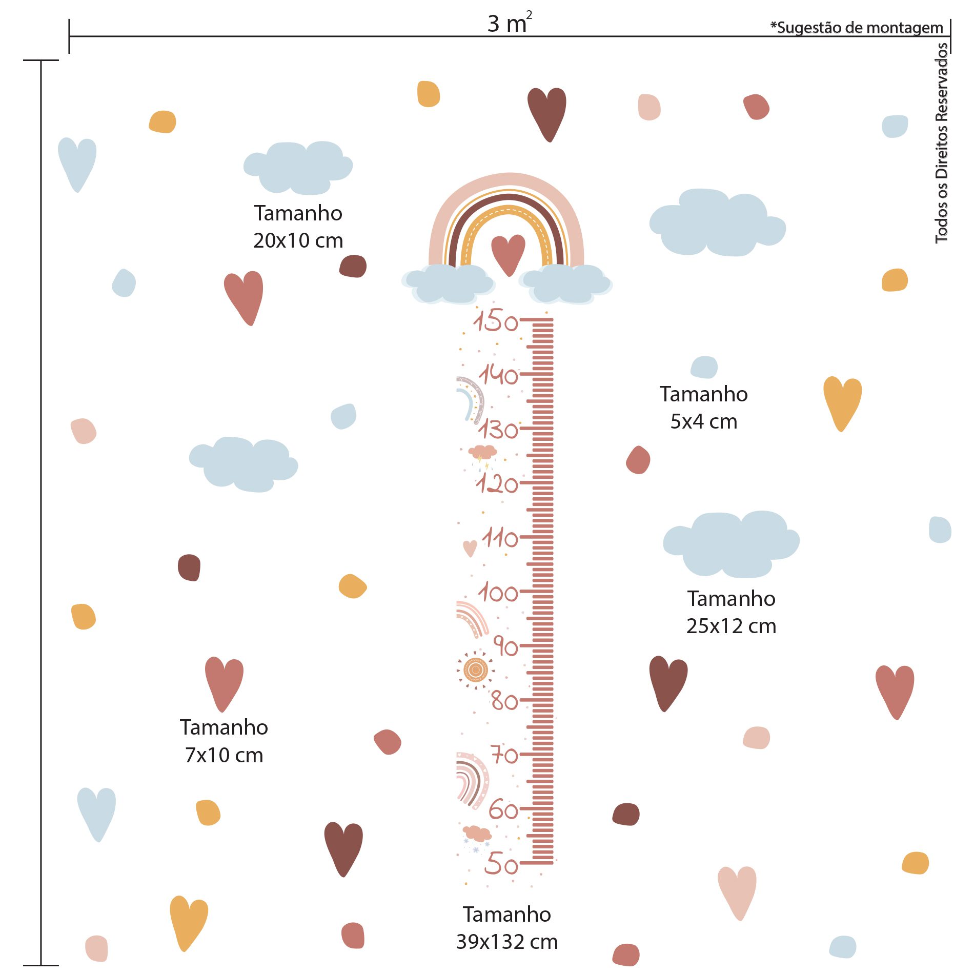 Dimensões: do Adesivo de Parede Régua de Crescimento Arco-Íris Cobre 3m²