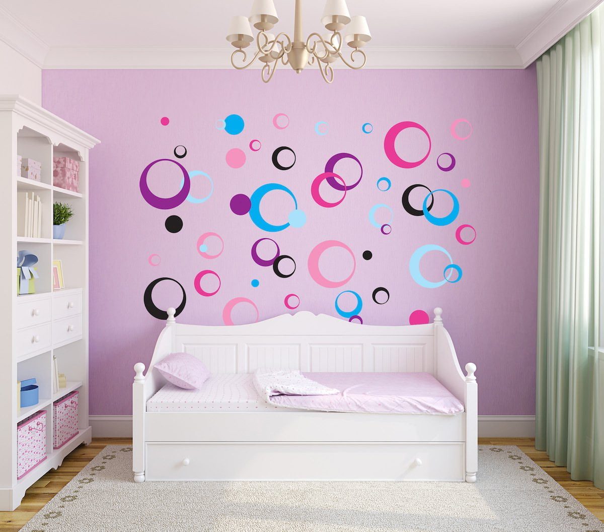 Como uma alternativa ao papel de parede convencional, você pode distribuir os arcos por toda a parede criando um efeito muito bonito e com muito mais economia e simplicidade na aplicação, em instantes o quarto já ganha uma nova decoração. As crianças vão adorar!