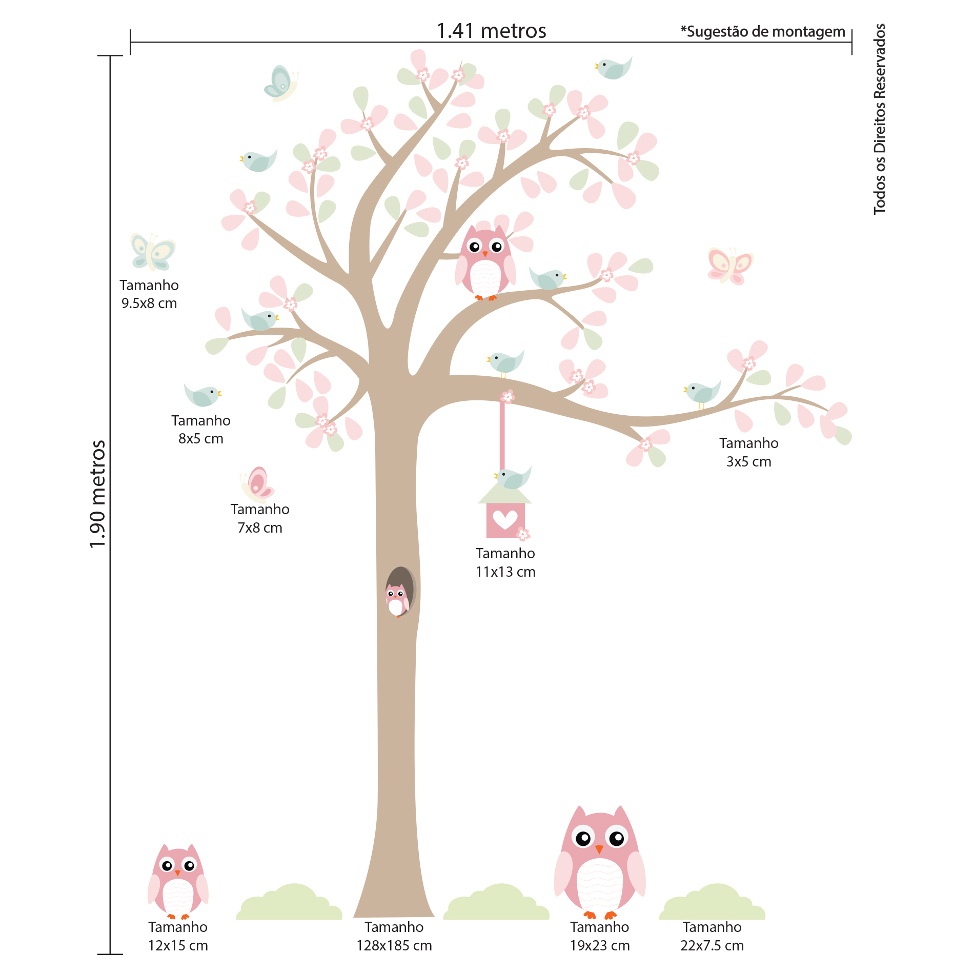Dimensões: do Adesivo de Parede Infantil Árvore Coruja Baby 1,85m Direita
