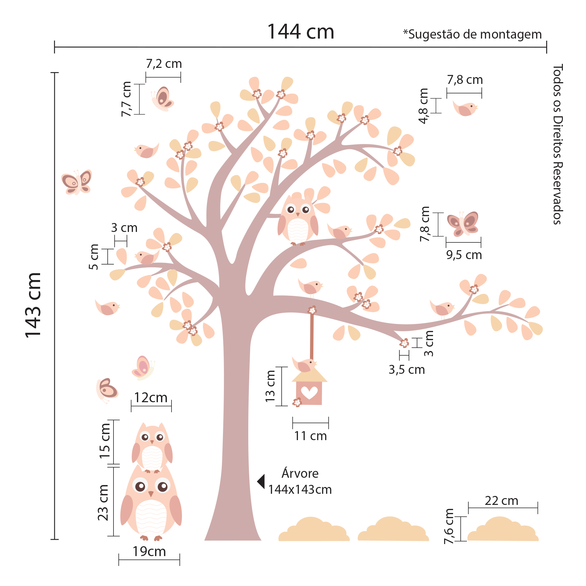 Dimensões e Características do Adesivo de Parede Árvore Coruja Baby