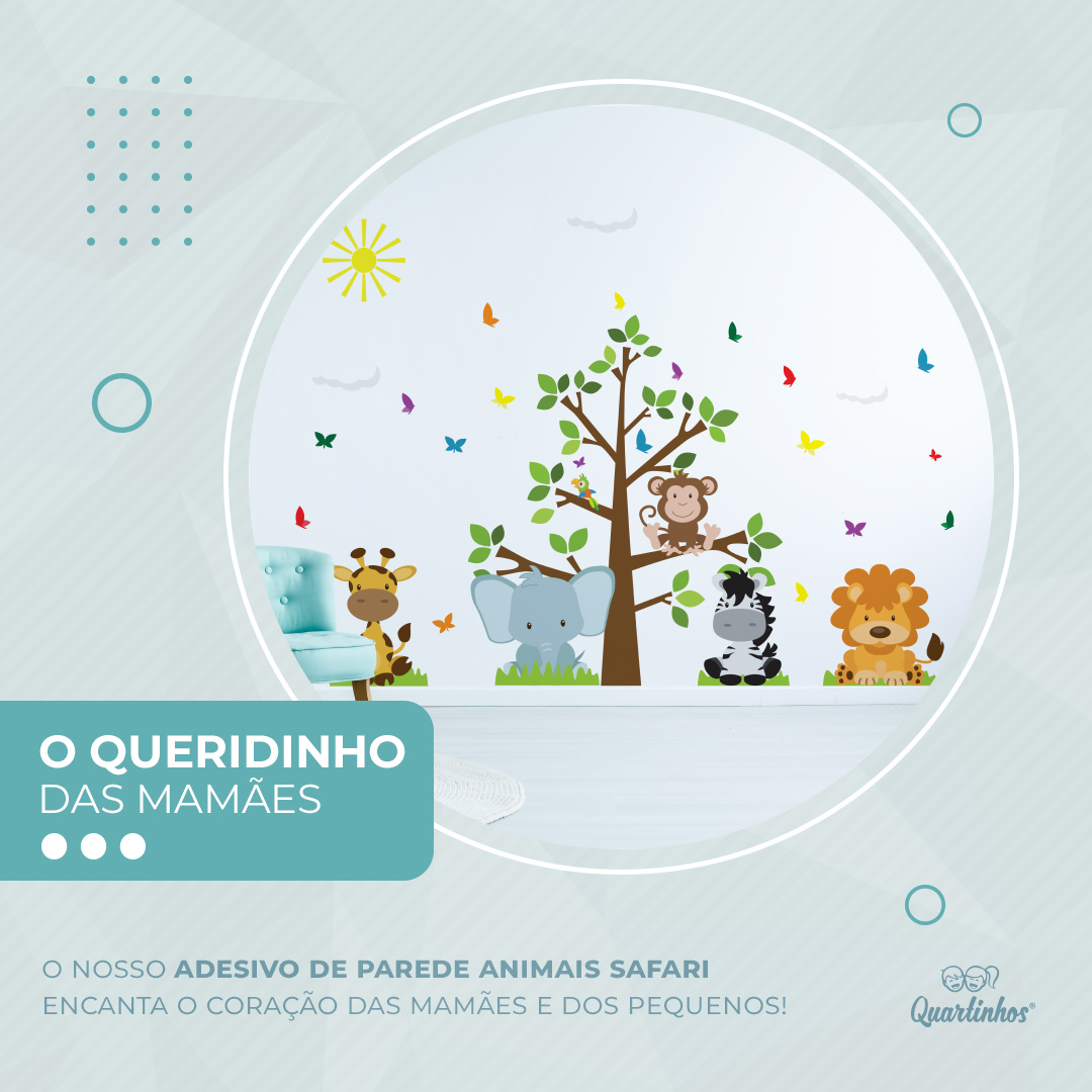 As girafas, os elefantes, leões e outros amigos do zoo já estão em milhares de quartos pelo Brasil afora. Então não demore e compre seu Adesivo de Parede Safari para decorar hoje o quartinho do seu pequeno!