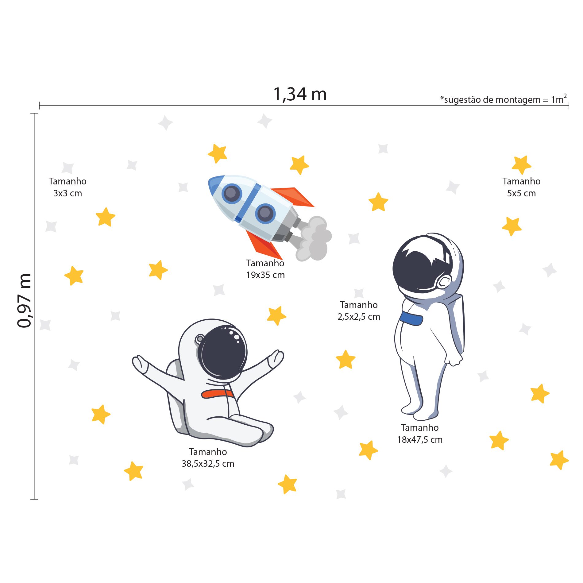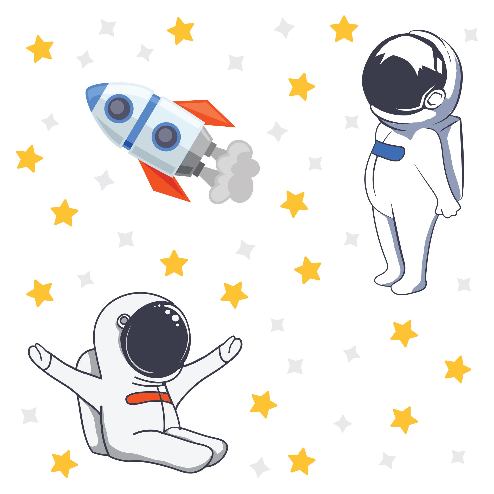 Adesivo de Parede Astronautas Espaço Foguete Estrelas 48un