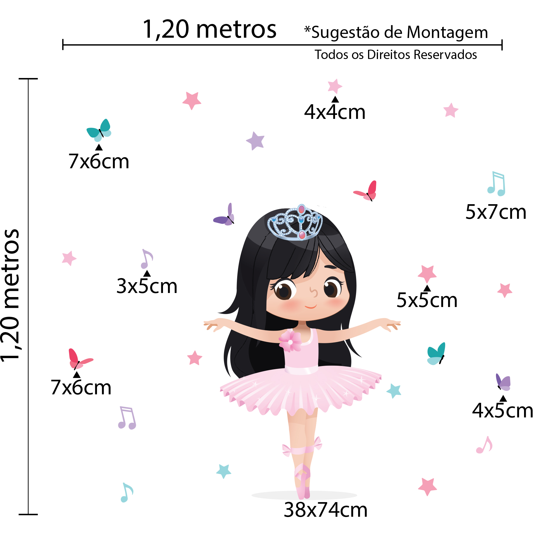 Dimensões: do Adesivo de Parede Bailarina Cabelo Preto Longo