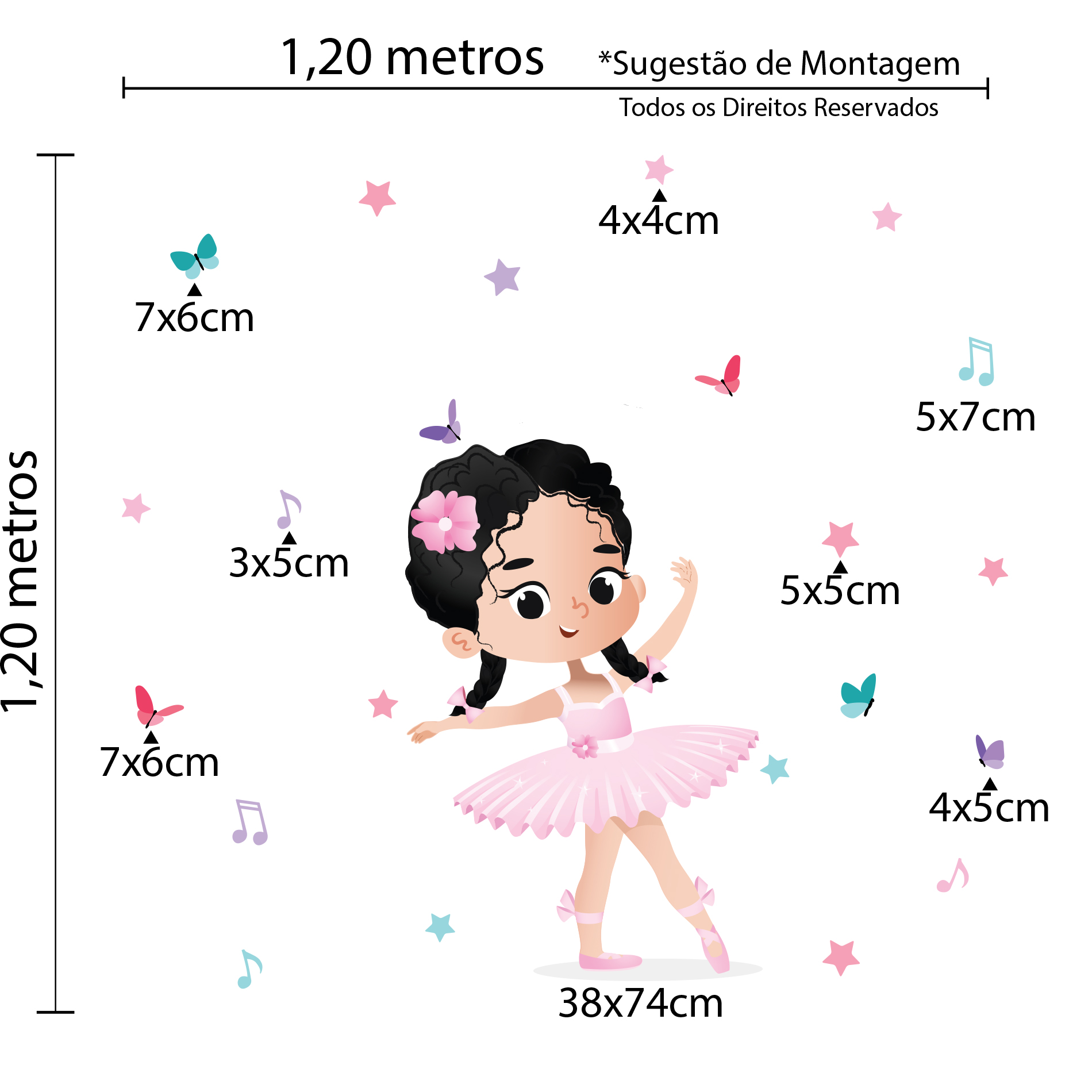 Dimensões: do Adesivo de Parede Bailarina Cabelo Preto