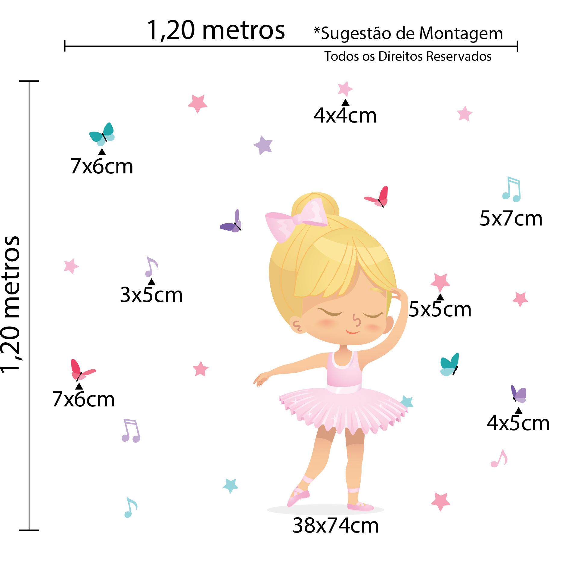 Dimensões e Características do Adesivo de Parede Bailarina para Quarto de Menina