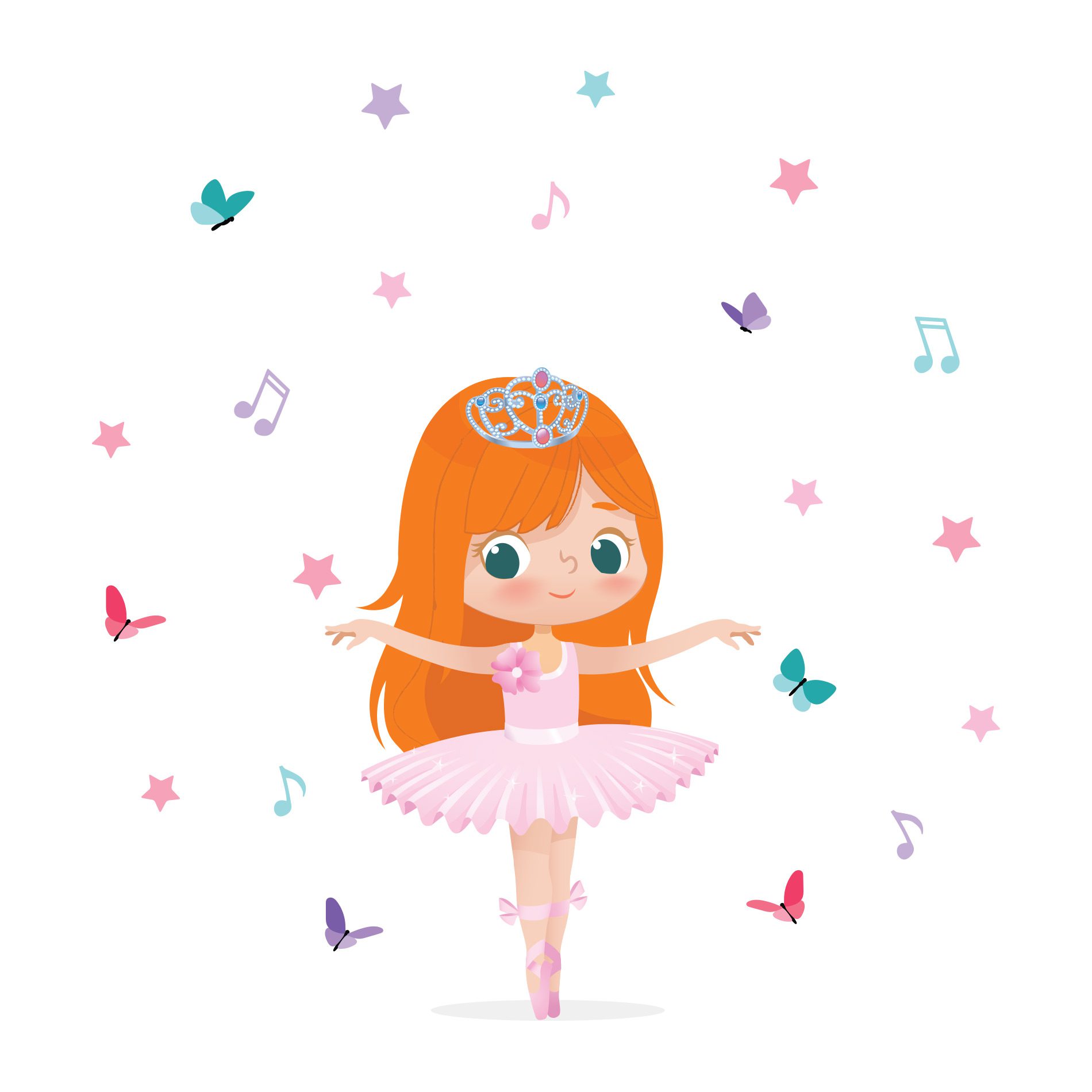 Dimensões: do Adesivo de Parede Bailarina Ruiva Cabelo Longo