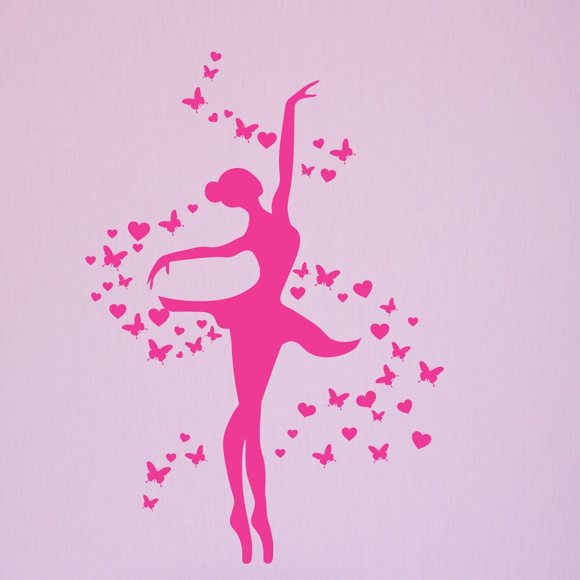 Adesivo de Parede Bailarina Rosa para Quarto de MeninaNosso adesivo de Bailarina foi feito especialmente para as apaixonadas por ballet, trazendo a delicadeza da silhueta de uma linda bailarina acompanhada de borboletas e corações que podem ser organizados na parede da forma que você preferir. Além de bonito é muito fácil de aplicar, garanta o seu agora mesmo!