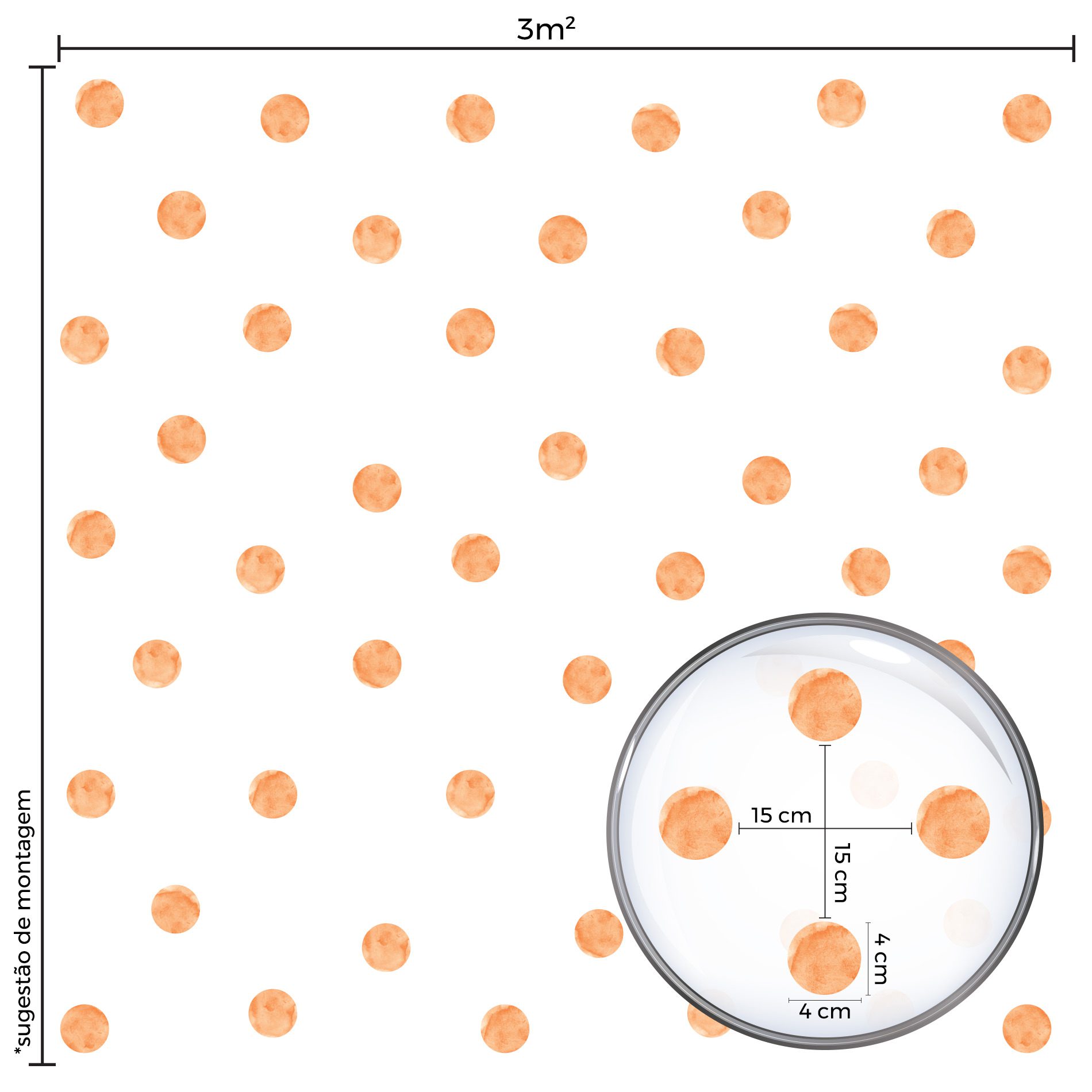 Características e Dimensões do Adesivo de Parede Bolinhas Aquarela Laranja