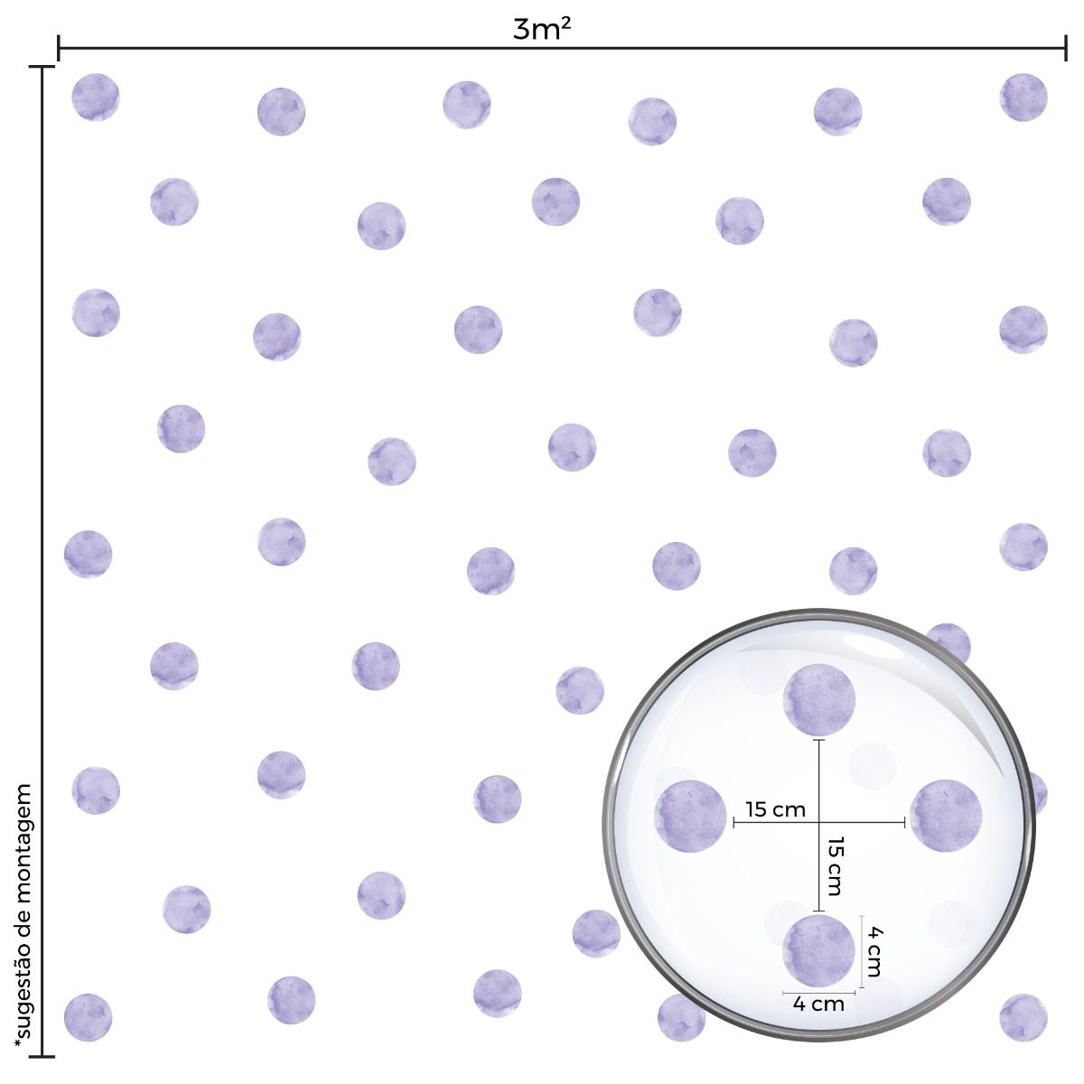 Características e Dimensões do Adesivo de Parede Bolinhas Aquarela Lilás