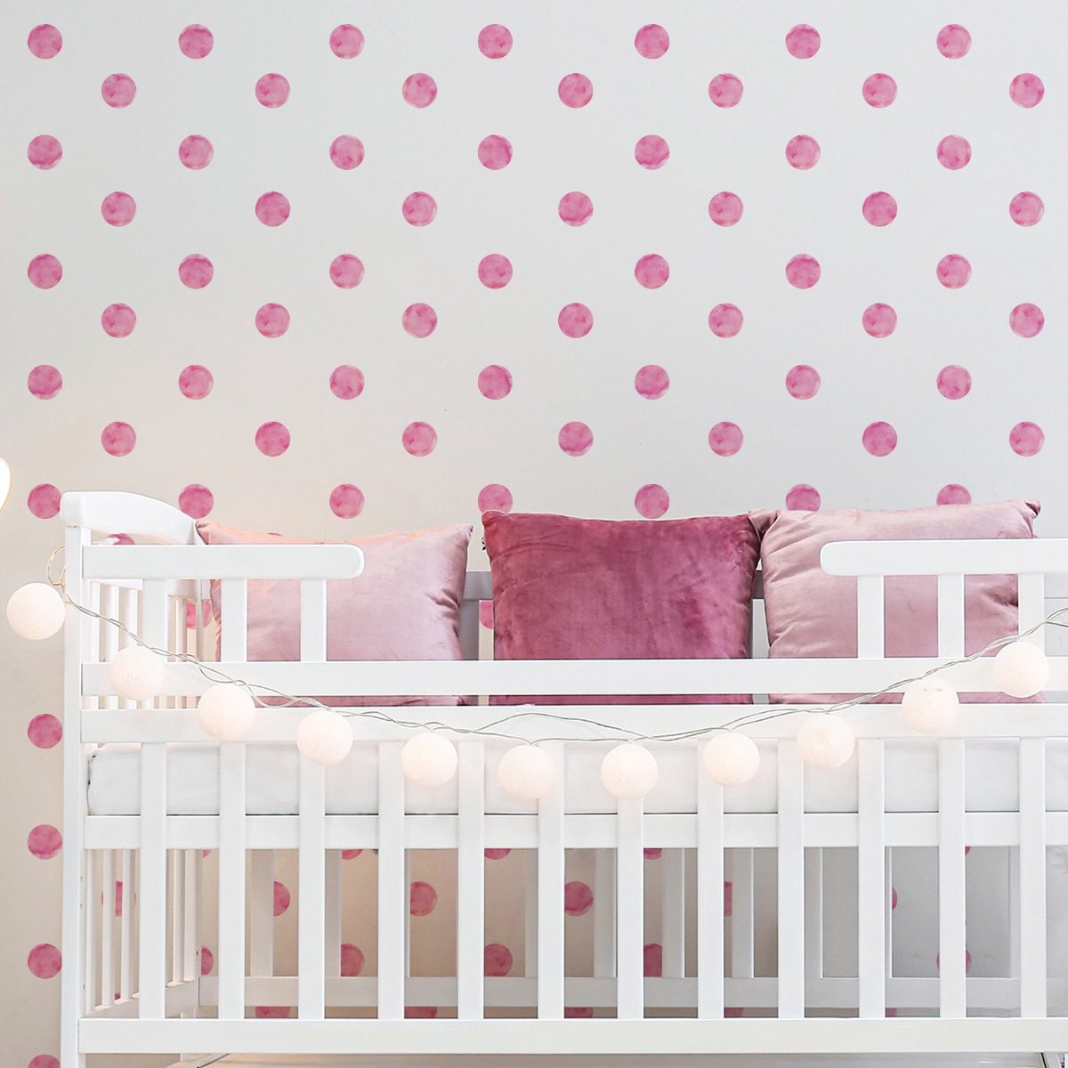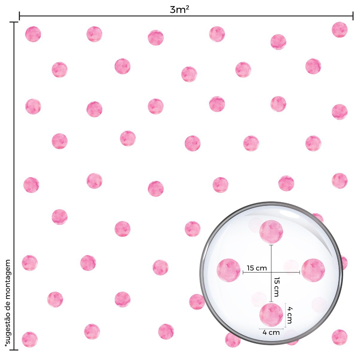 Características e Dimensões do Adesivo de Parede Bolinhas Aquarela Rosa