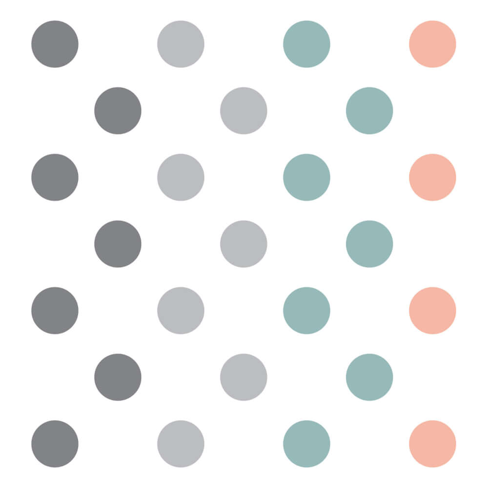 Adesivo de Parede Bolinhas Coloridas Cinza Coral Verde 80unAdesivo de Parede Bolinhas Coloridas Cinza Coral Verde 80un
