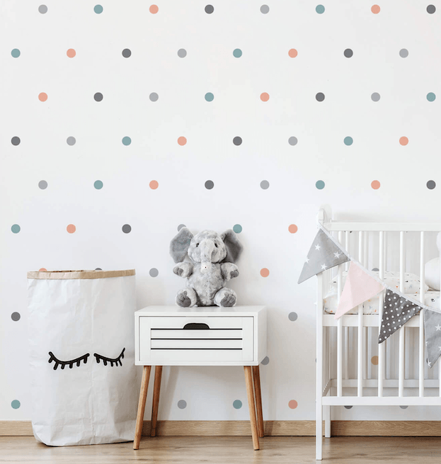 Adesivo de Parede Bolinhas Coloridas Cinza Coral Verde 80un