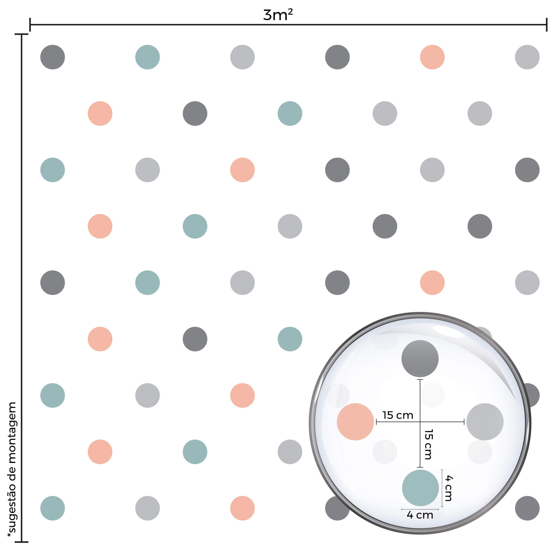 Características e Dimensões do Adesivo de Parede Bolinhas