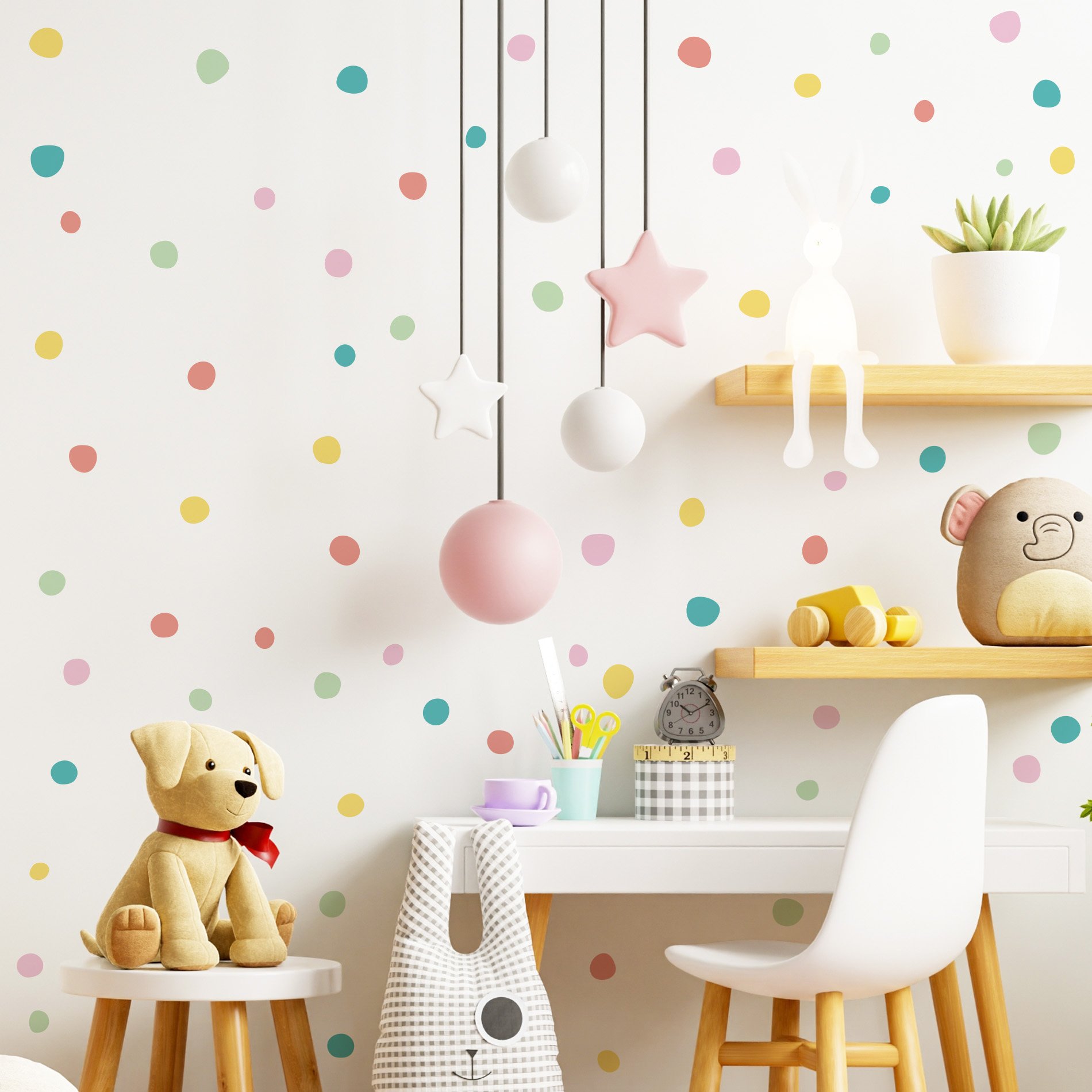 Dimensões e Características do Adesivo De Parede Bolinhas Irregulares tons pastéis