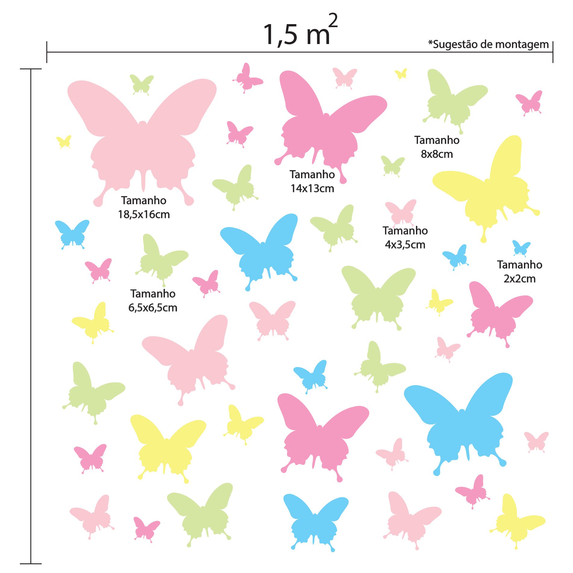 Adesivo de Parede Borboletas Candy Colors para Quarto 55un
