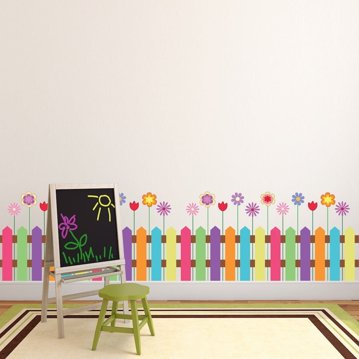 Uma charmosa cerquinha cheia de flores montam um cenário encantador com Adesivo de Parede Infantil para ser aplicado no quarto das crianças ou na brinquedoteca. As crianças vão se identificar e se divertir num ambiente convidativo e estimulante.