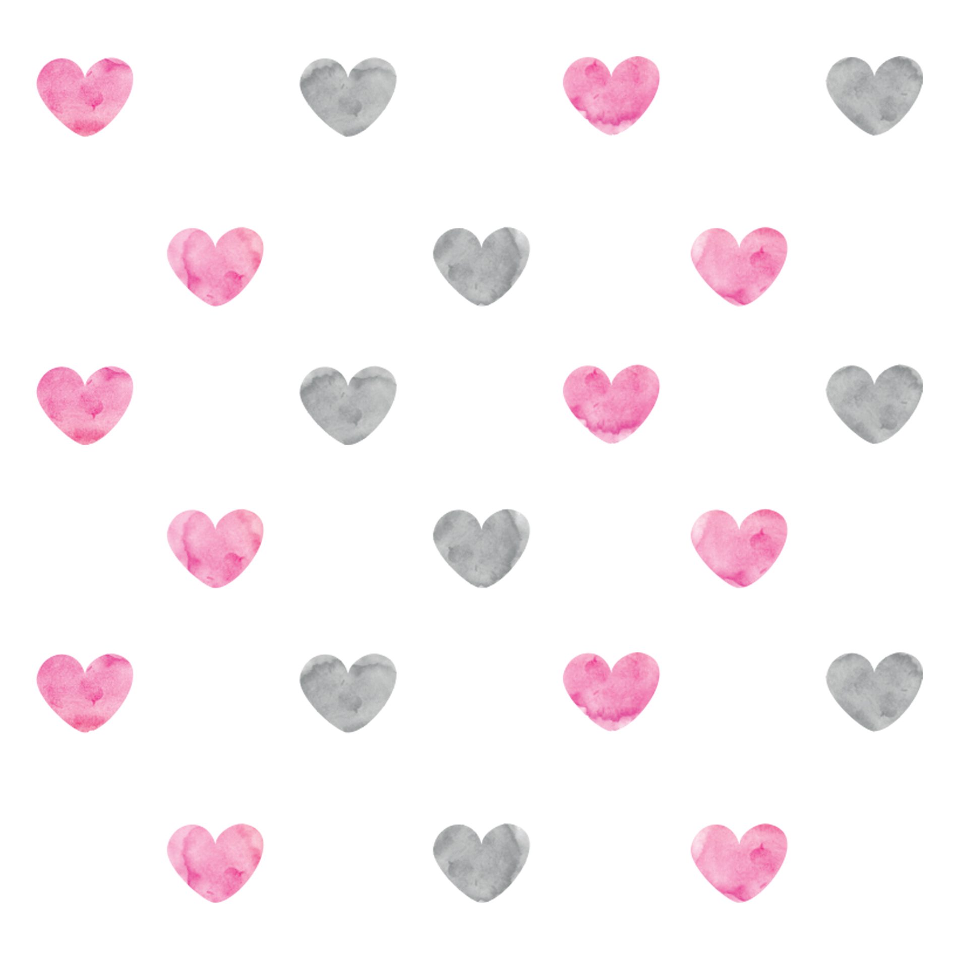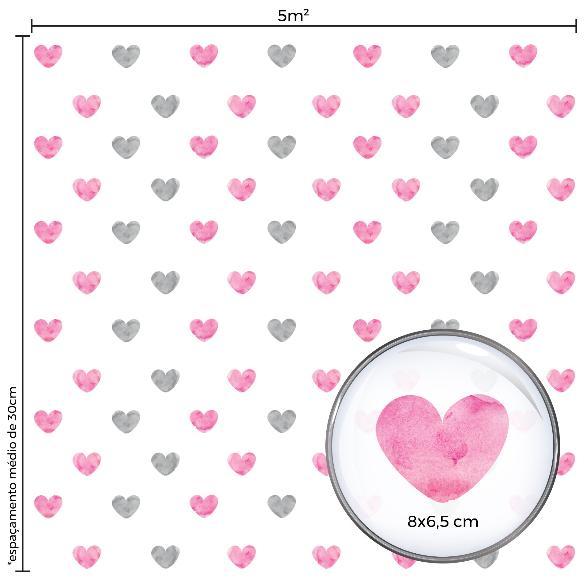 Adesivo de Parede Corações Rosa e Cinza 55un