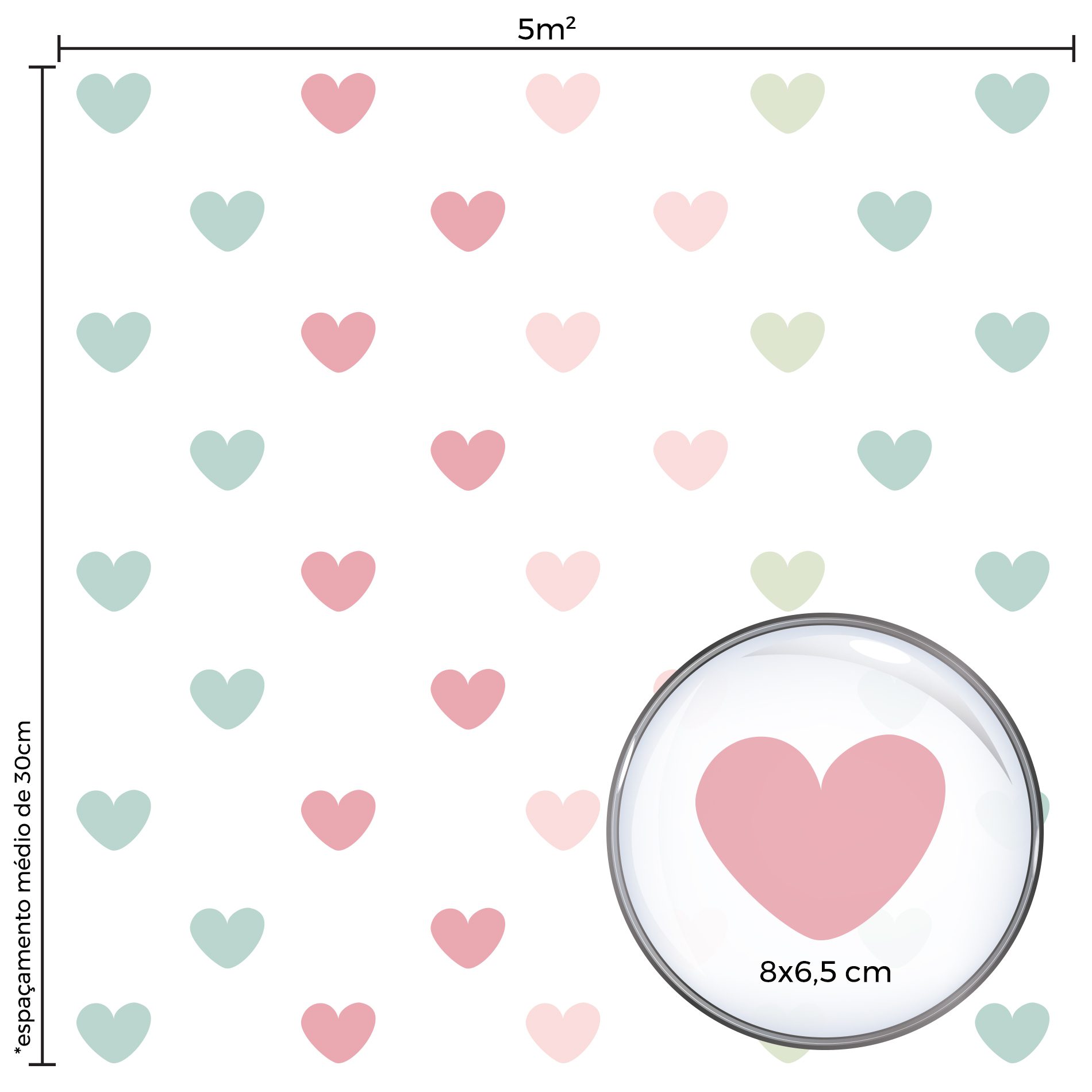 Imagine sua sala de estar ganhando vida com corações rosa e verde em uma dança suave pela parede. Essa combinação de cores suaves cria uma atmosfera tranquila e relaxante, ideal para momentos de descanso e para receber amigos e familiares.