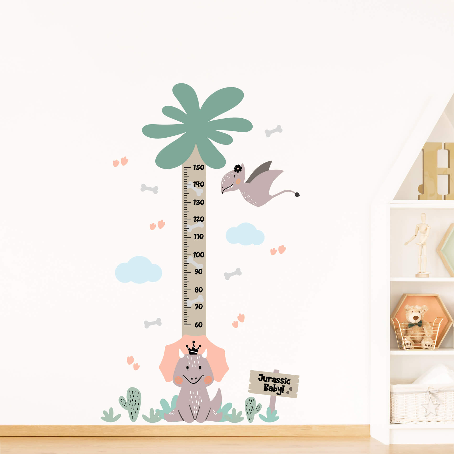 Adesivo de Parede Dinossauro Menina Jurassic Baby Régua Crescimento
