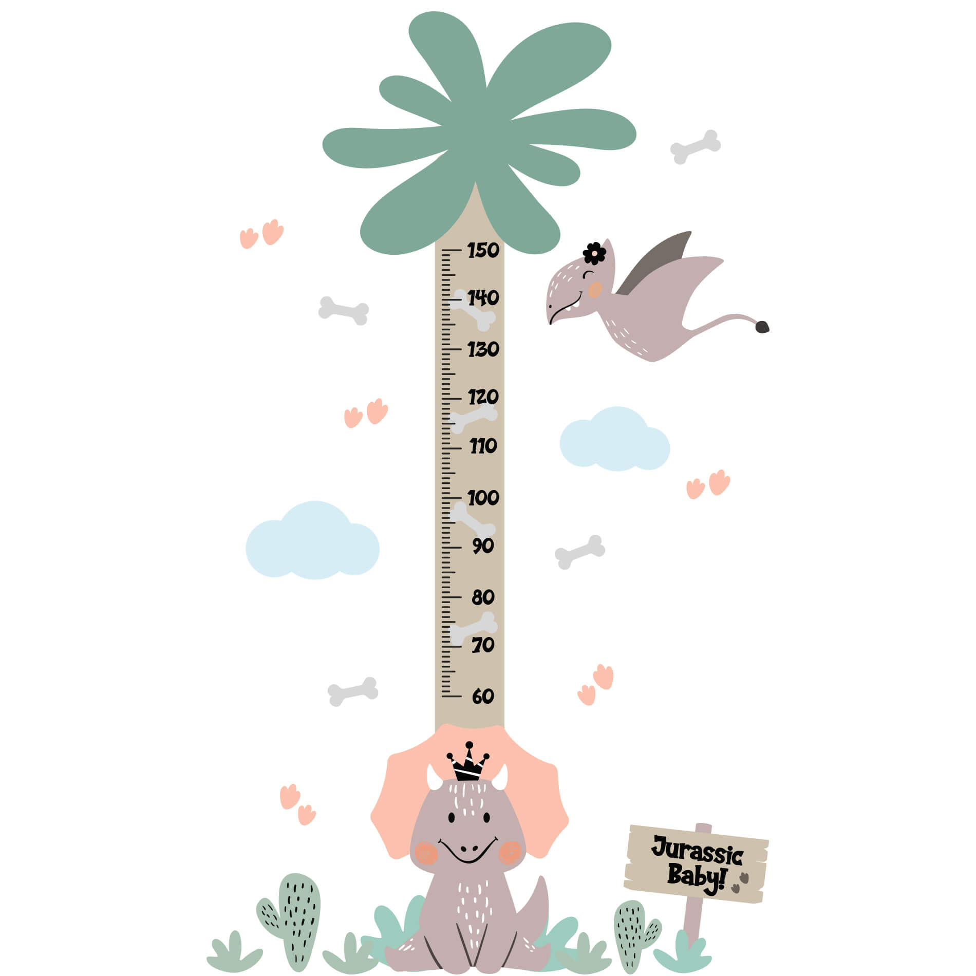 Adesivo de parede infantil medidor de altura com tema dinossauro menina da coleção Jurassic Baby